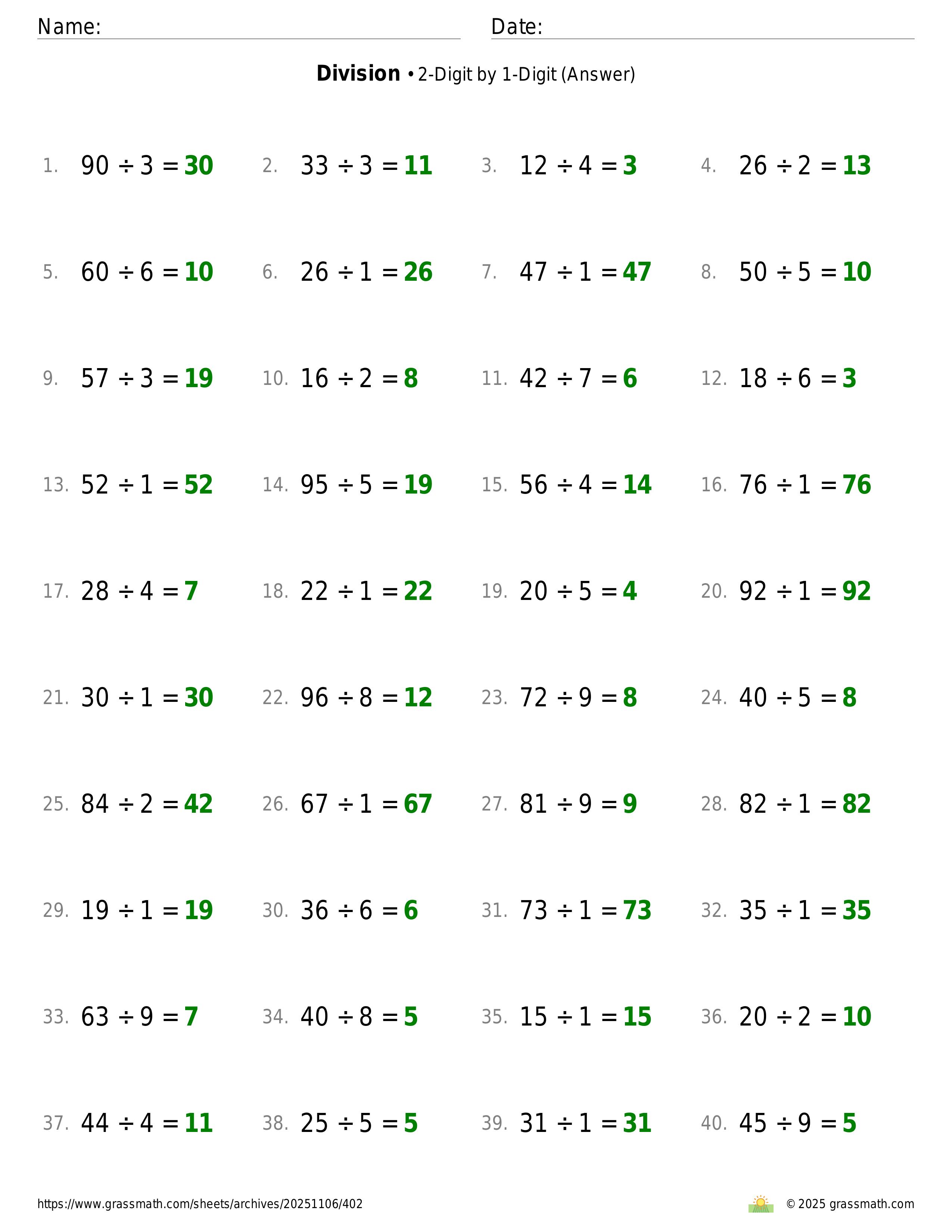 Division 2-Digit by 1-Digit