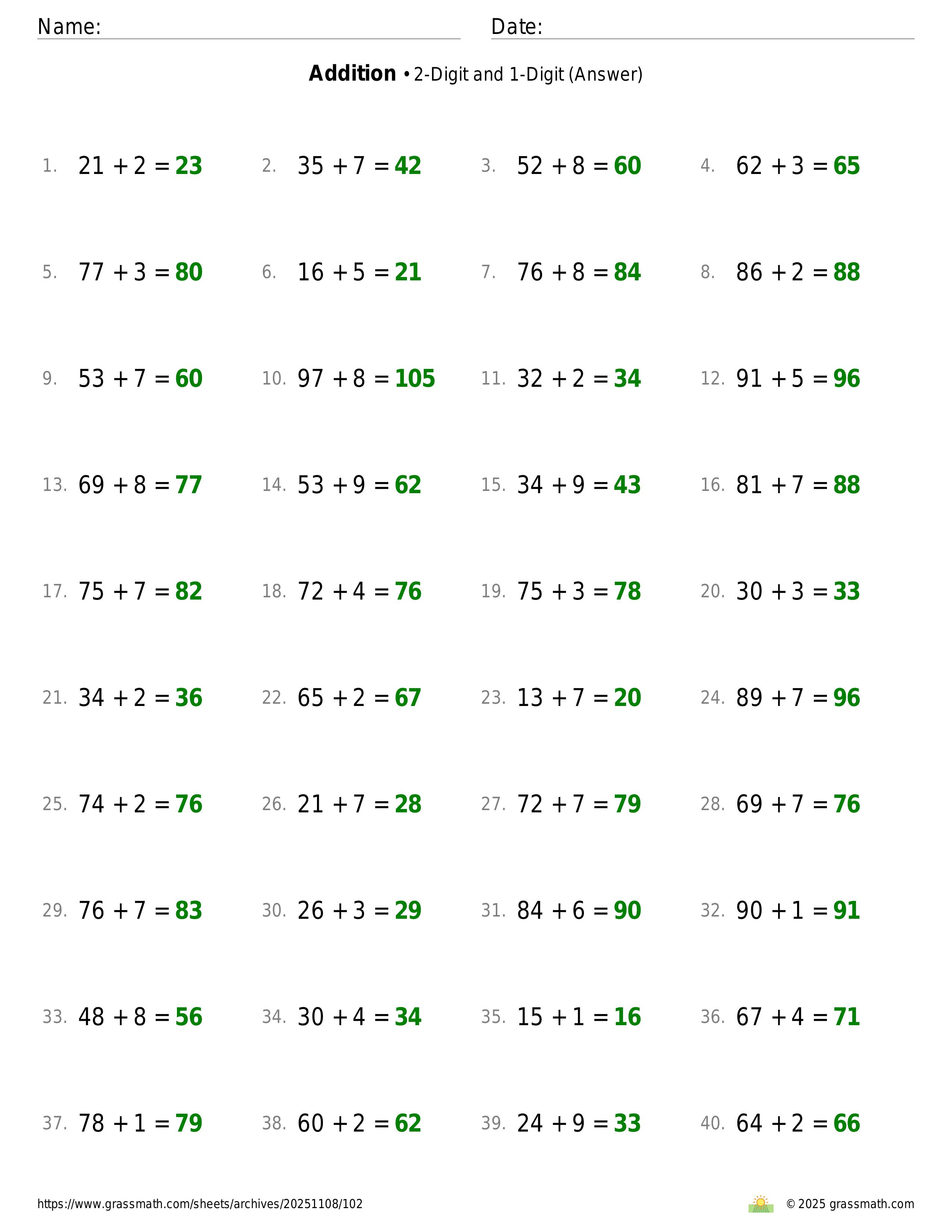 Addition 2-Digit and 1-Digit