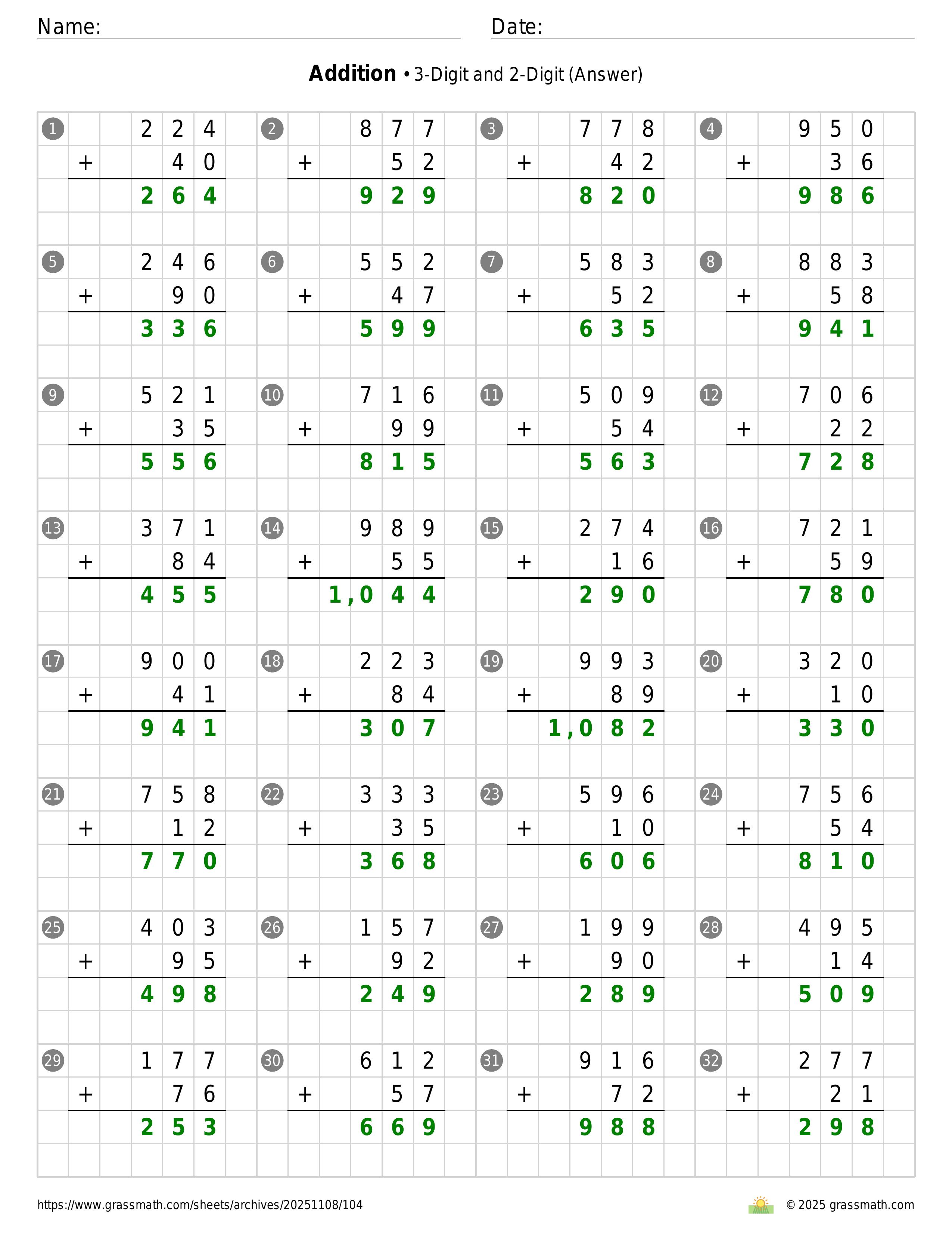 Addition 3-Digit and 2-Digit
