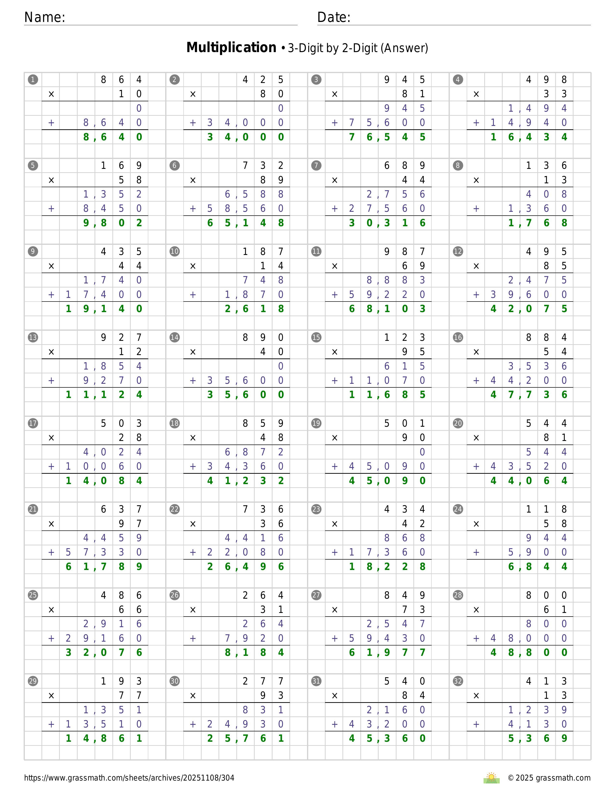 Multiplication 3-Digit by 2-Digit
