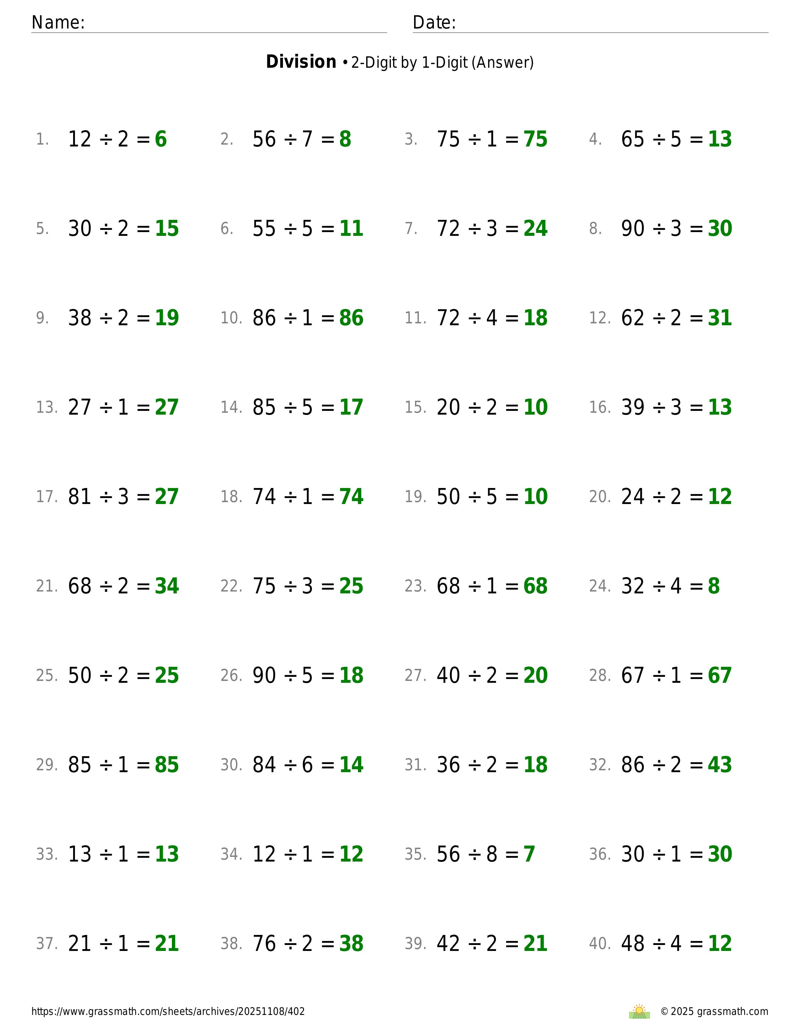 Division 2-Digit by 1-Digit