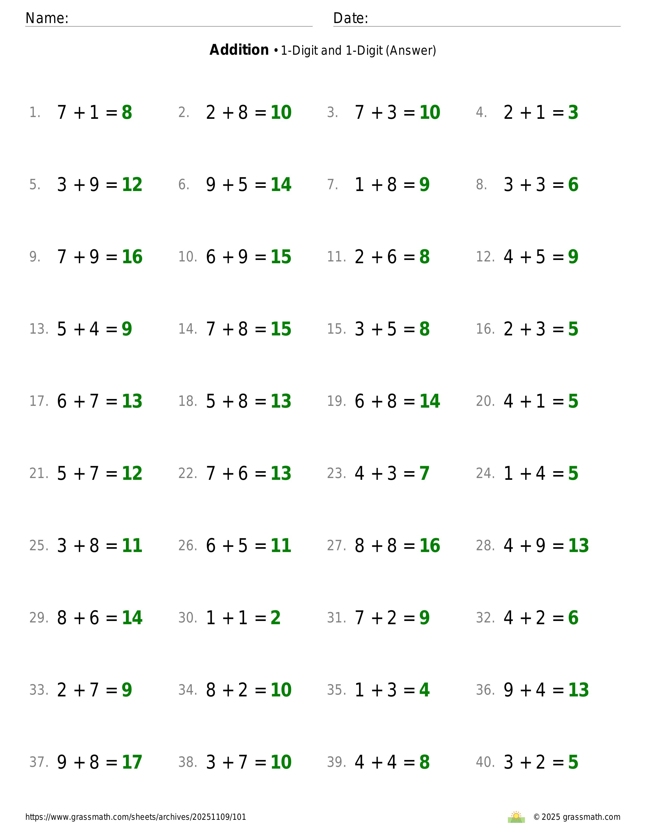 Addition 1-Digit and 1-Digit