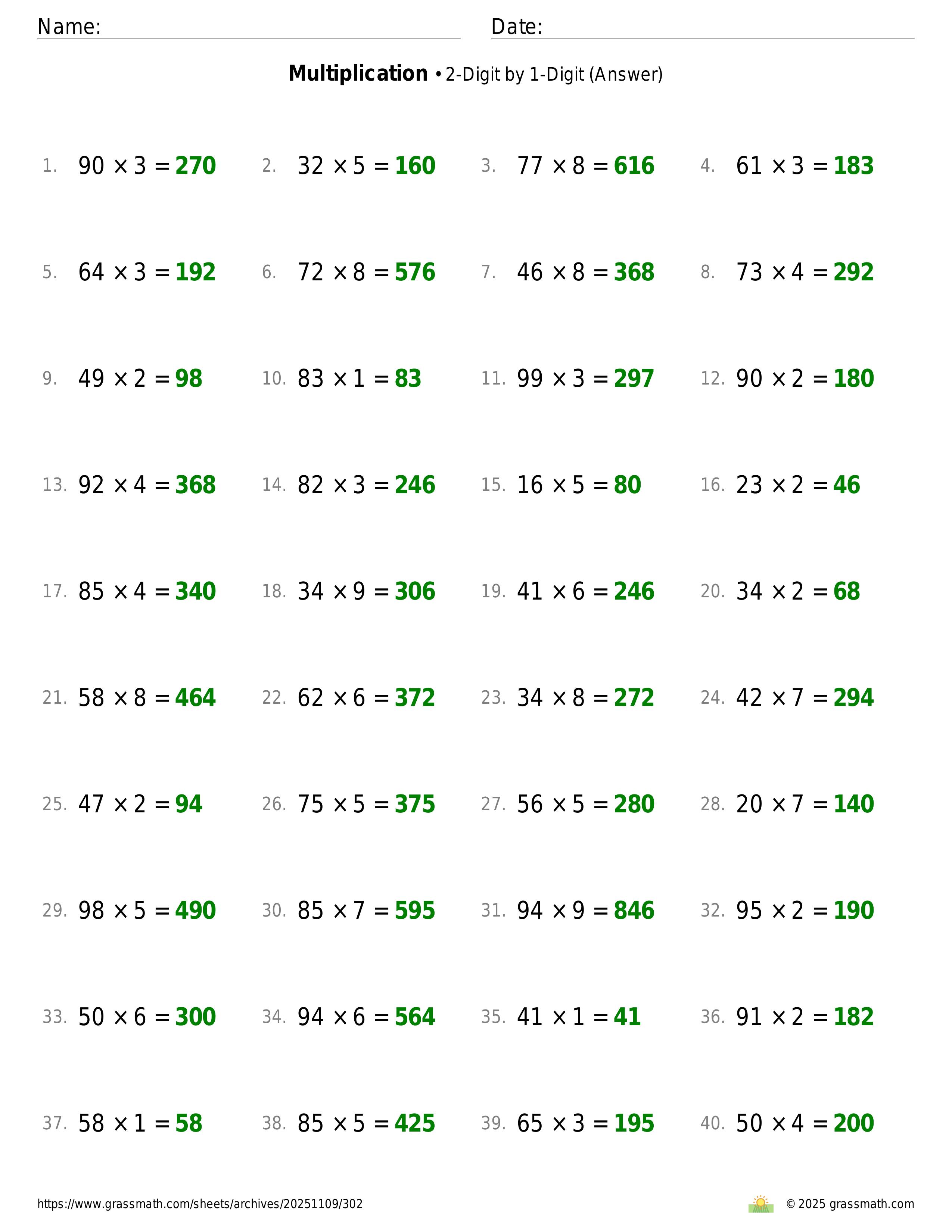 Multiplication 2-Digit by 1-Digit