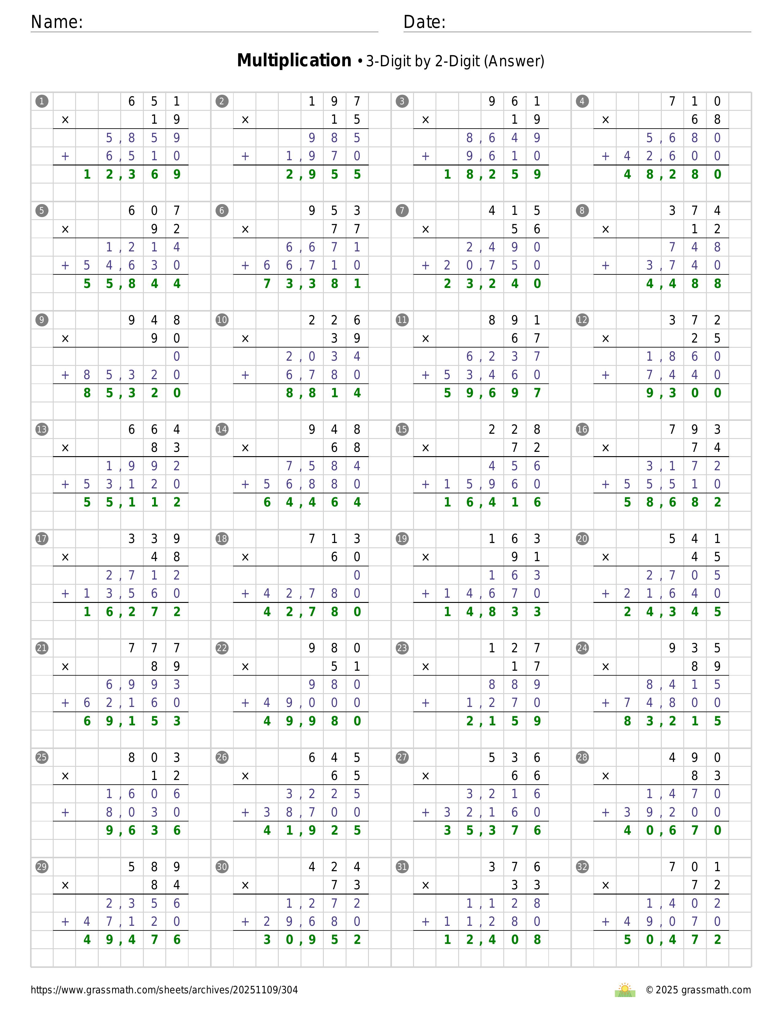 Multiplication 3-Digit by 2-Digit