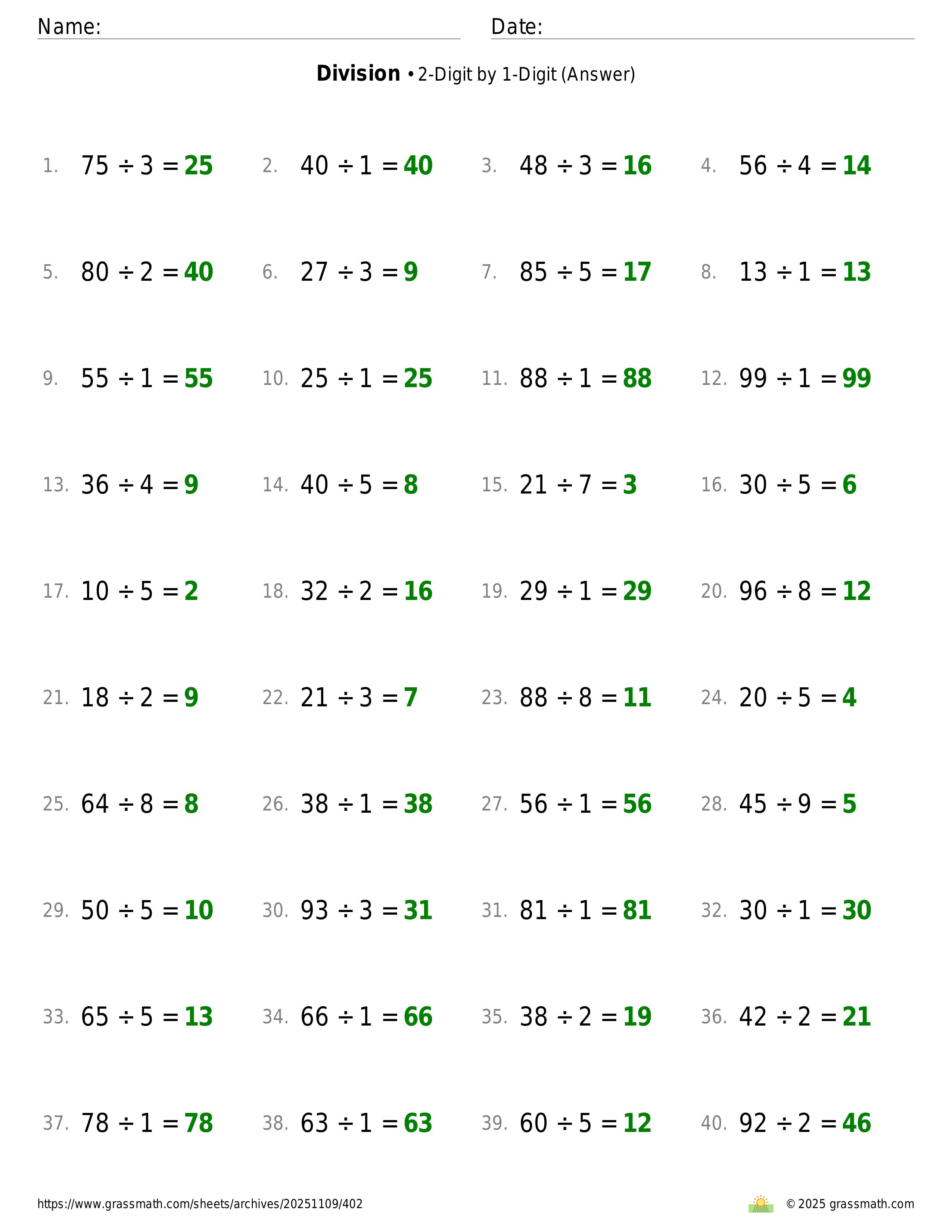 Division 2-Digit by 1-Digit