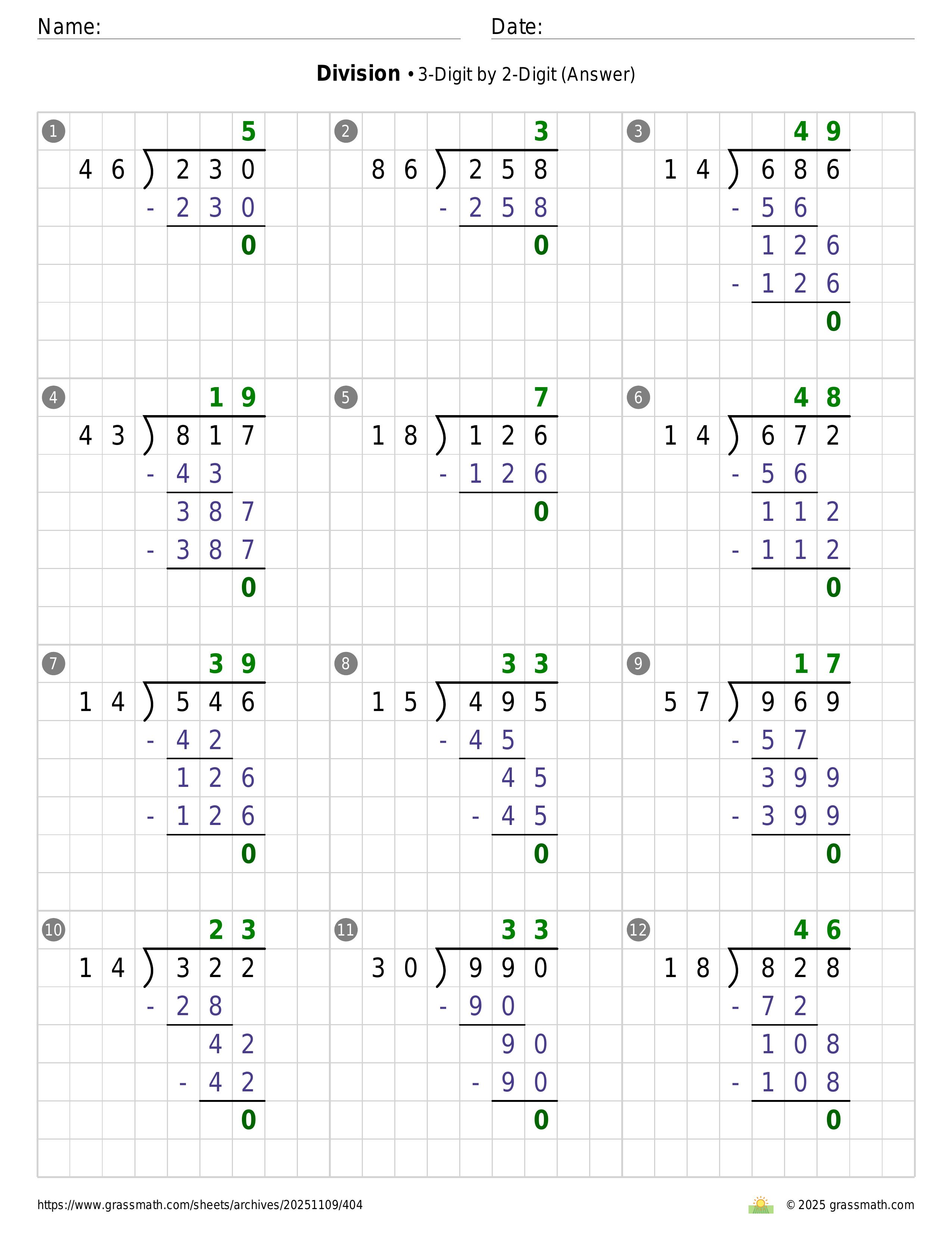 Division 3-Digit by 2-Digit