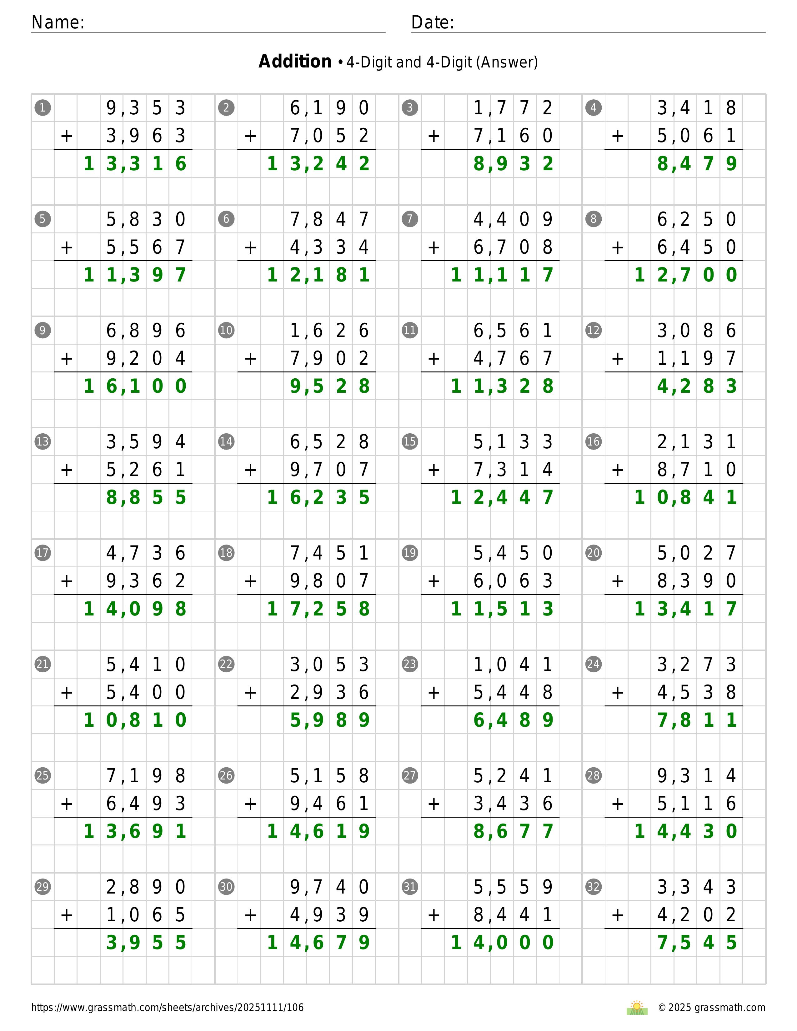 Addition 4-Digit and 4-Digit