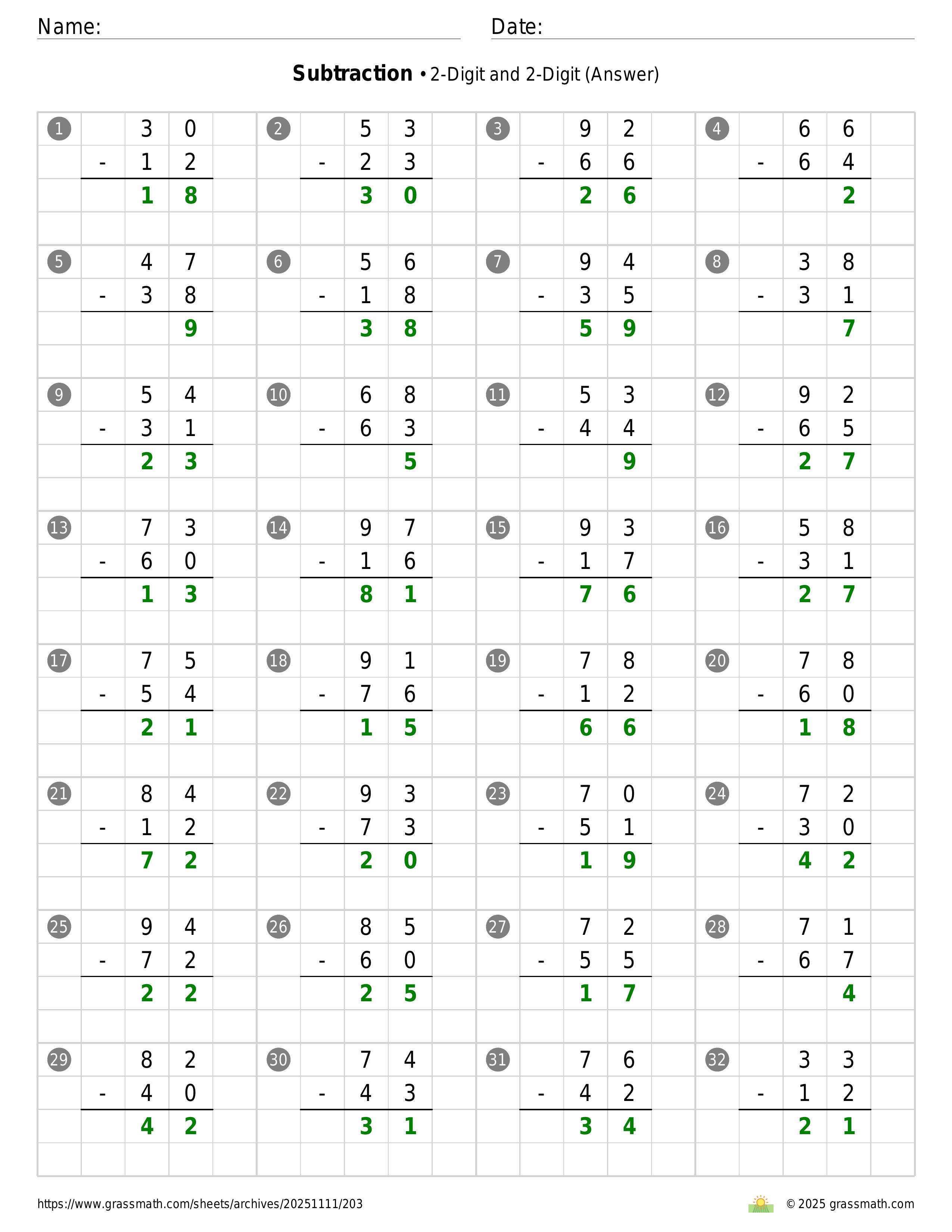 Subtraction 2-Digit and 2-Digit