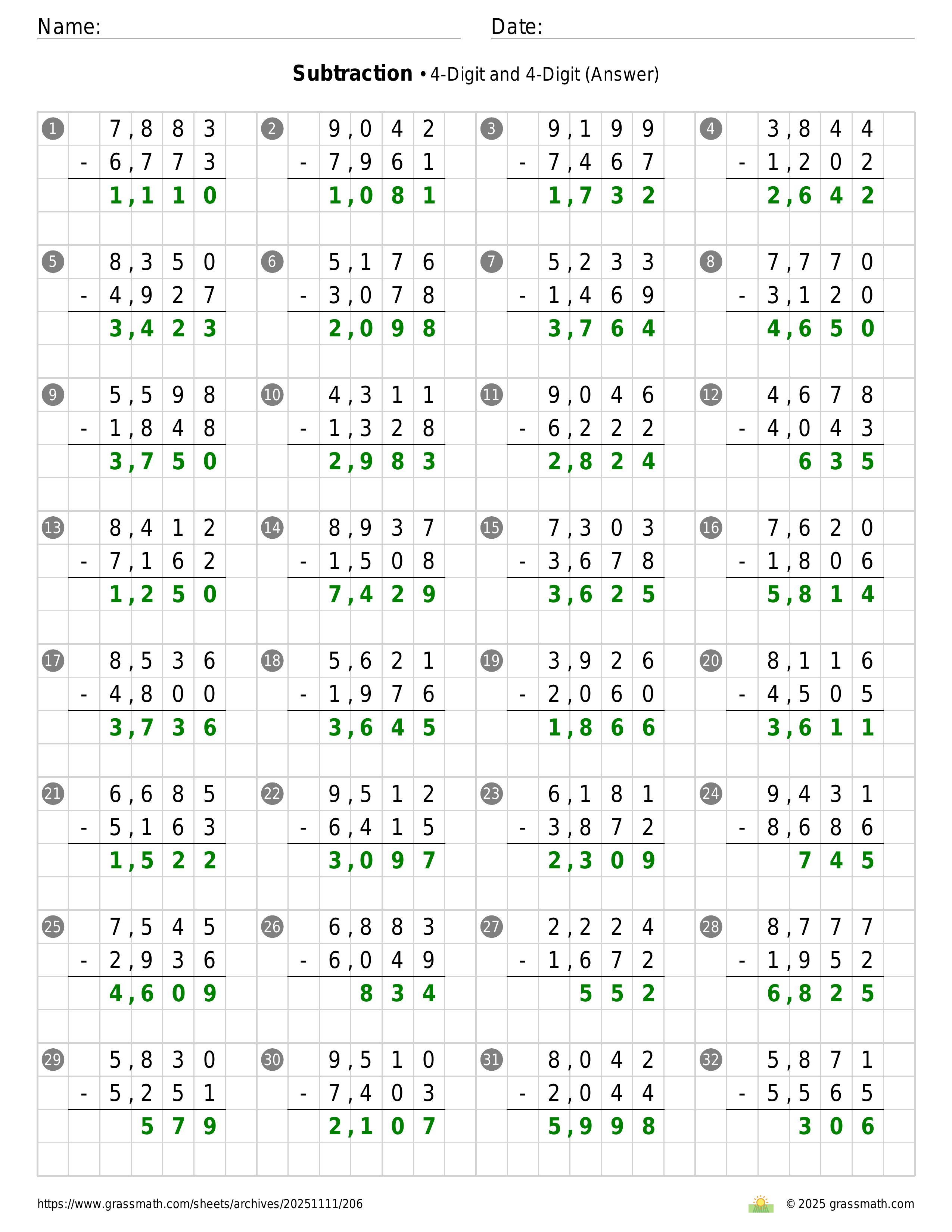 Subtraction 4-Digit and 4-Digit