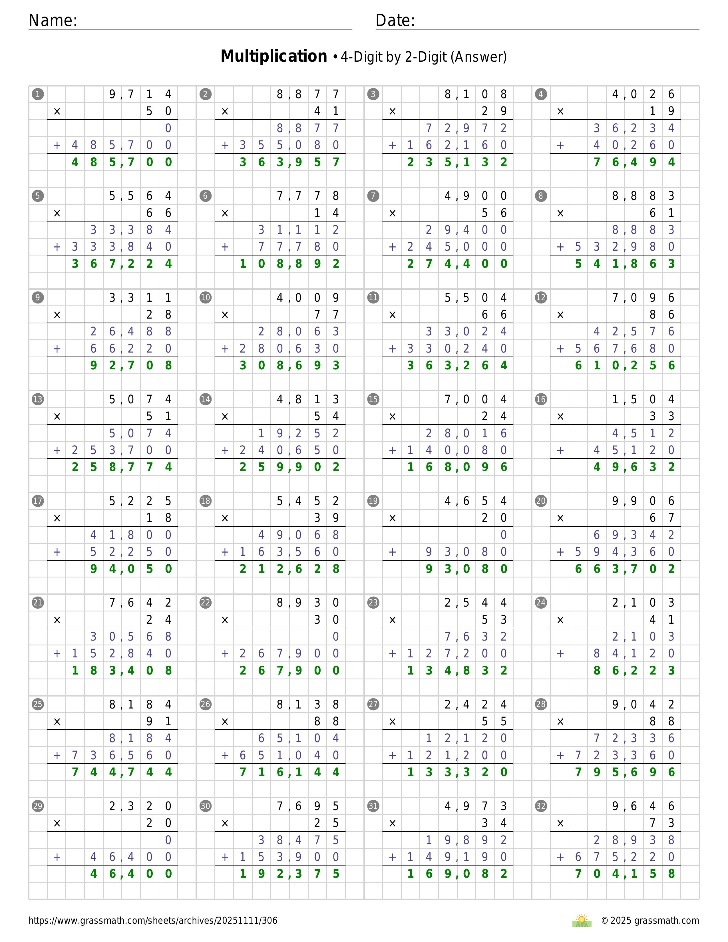 Multiplication 4-Digit by 2-Digit
