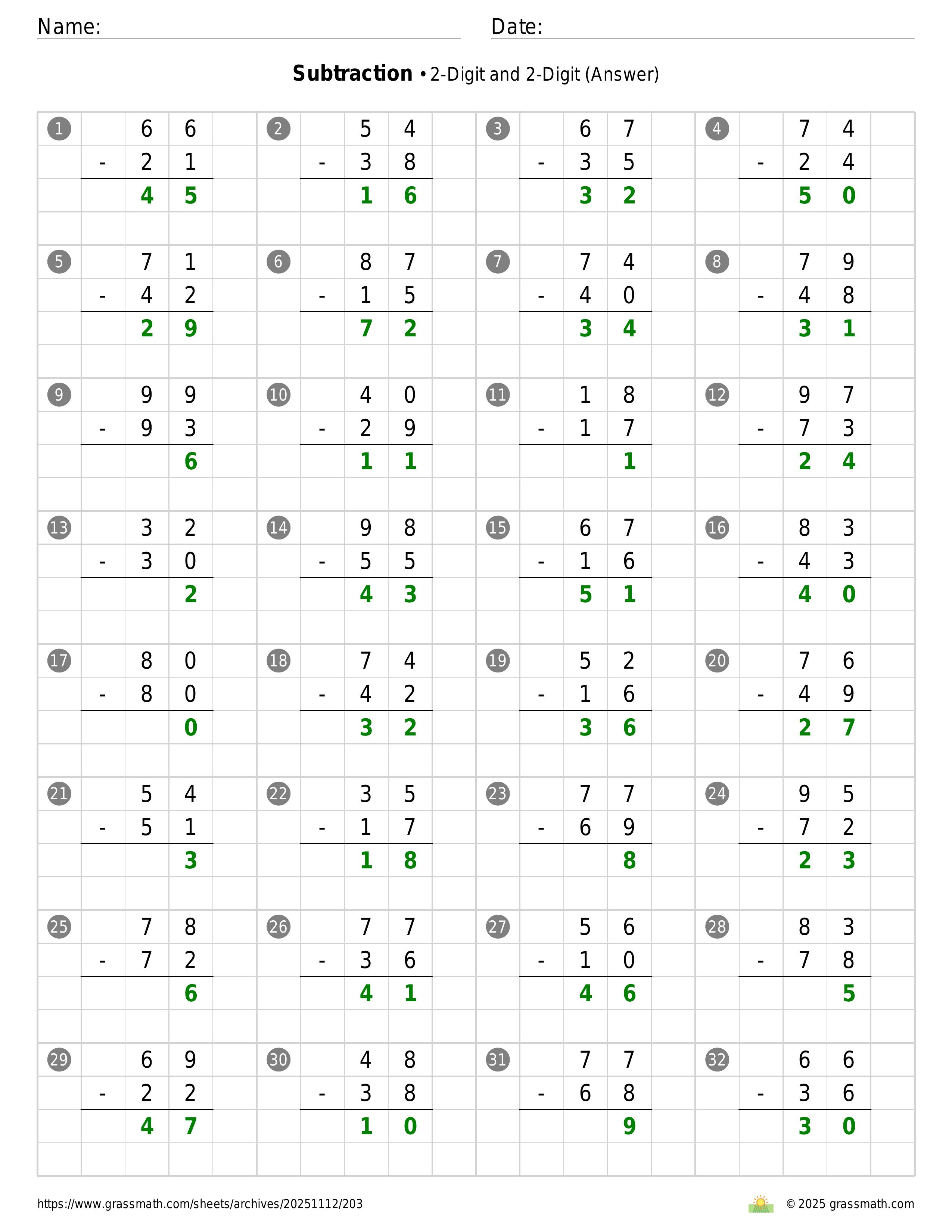 Subtraction 2-Digit and 2-Digit