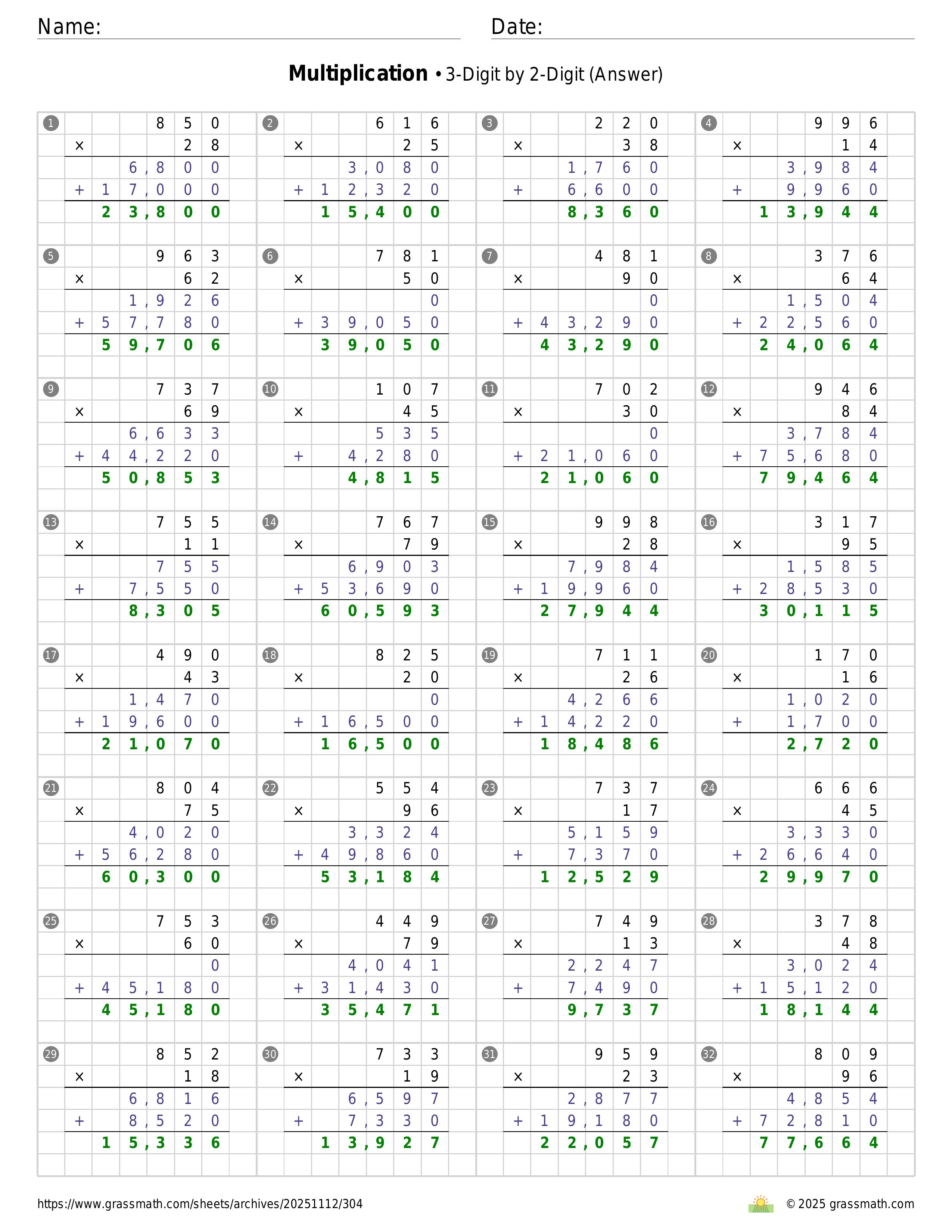Multiplication 3-Digit by 2-Digit