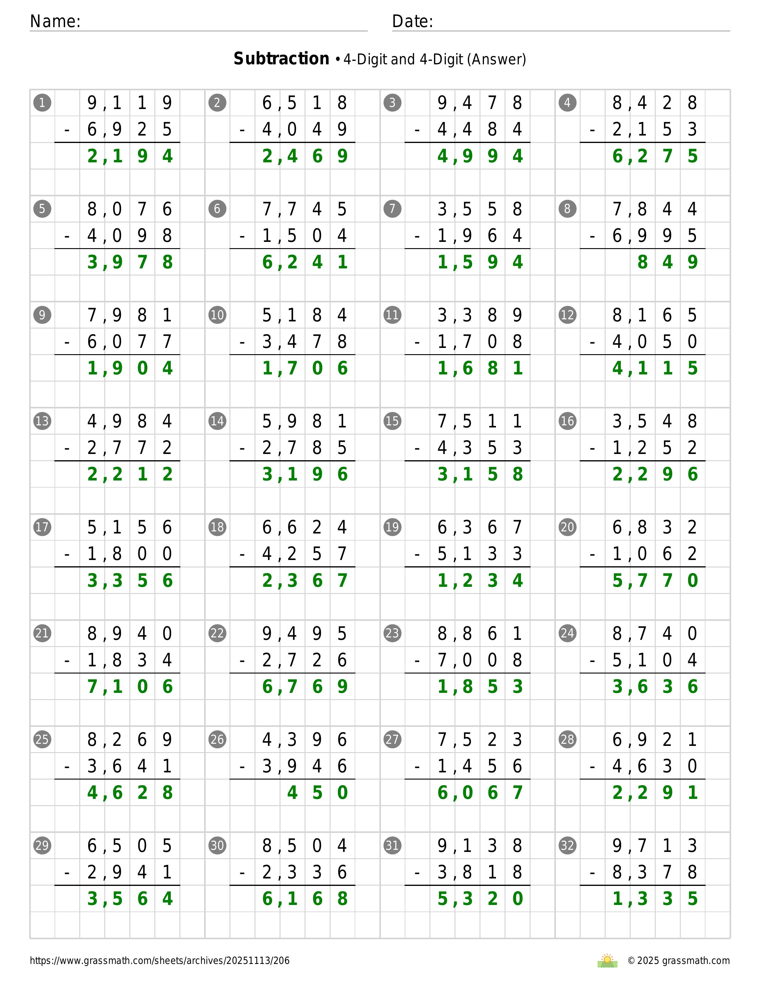 Subtraction 4-Digit and 4-Digit