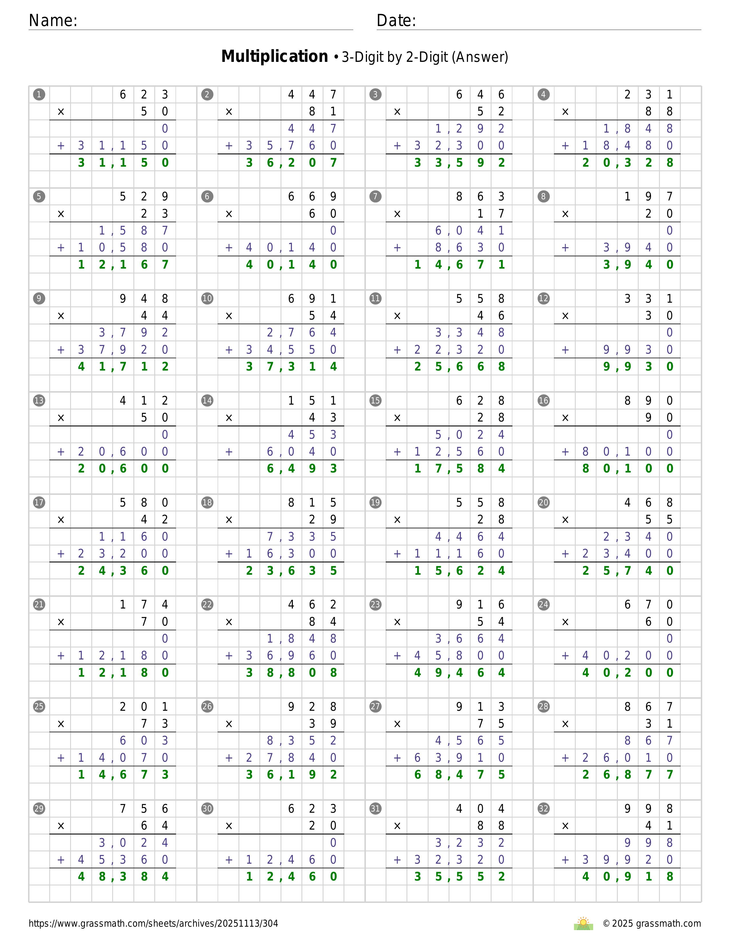 Multiplication 3-Digit by 2-Digit