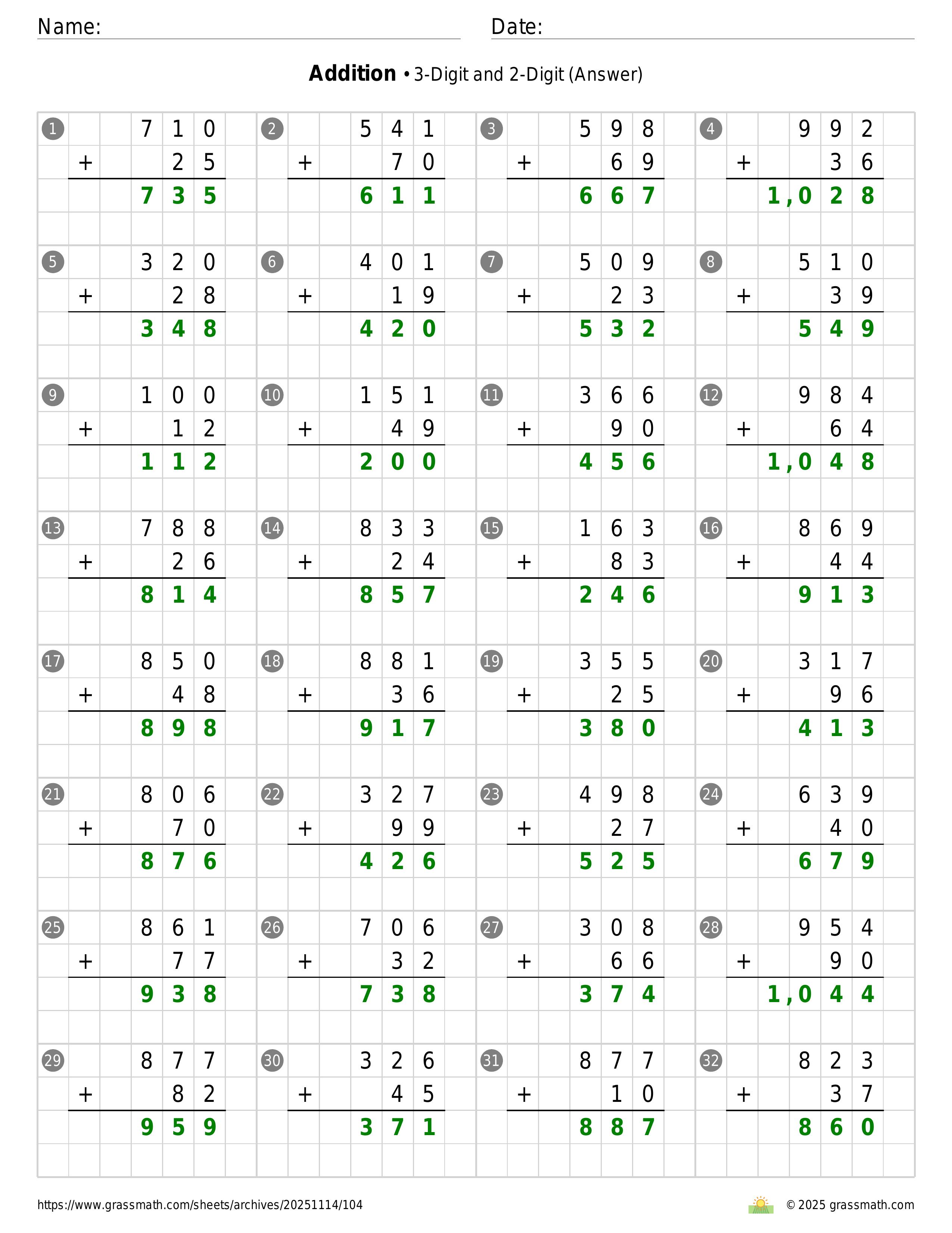 Addition 3-Digit and 2-Digit