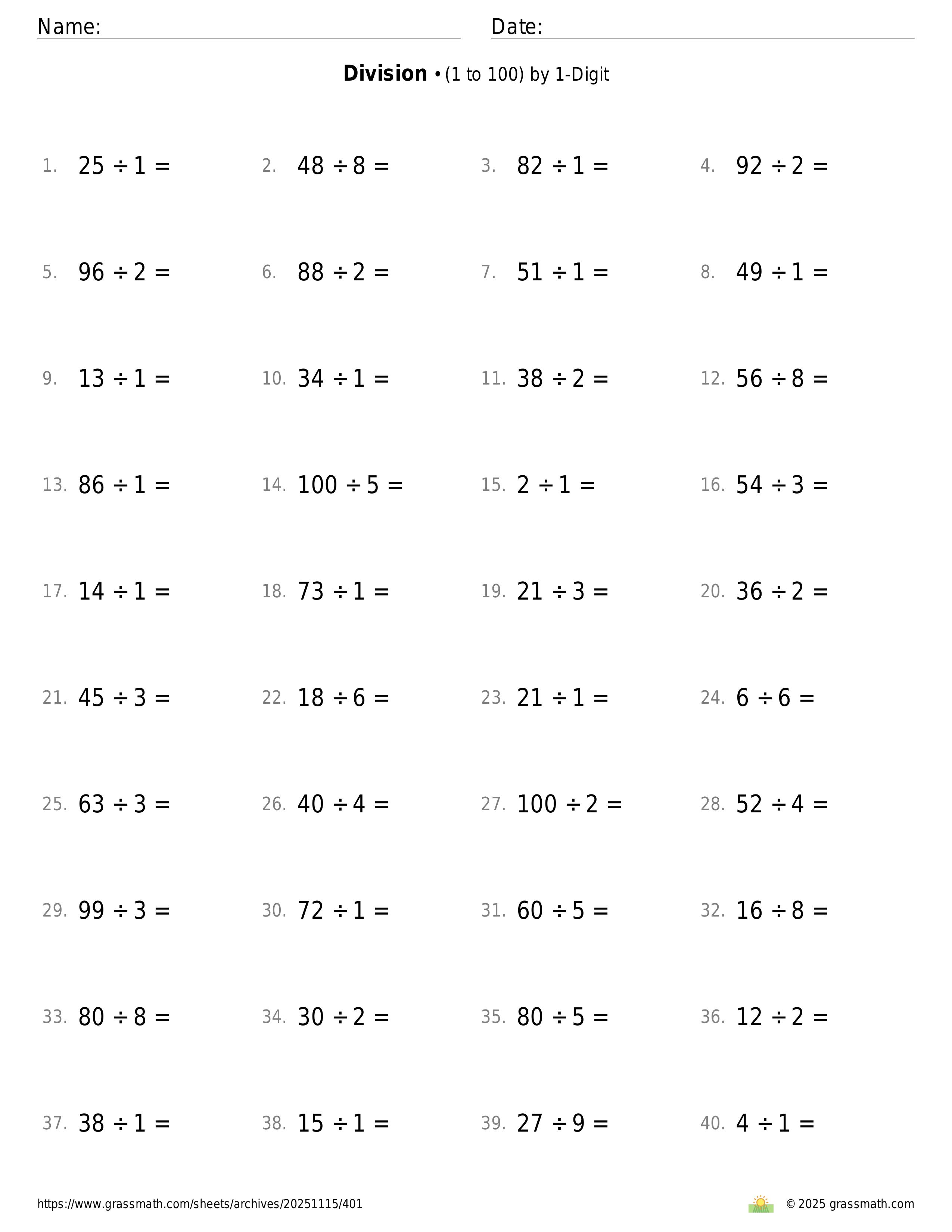 3-Digit by 1-Digit