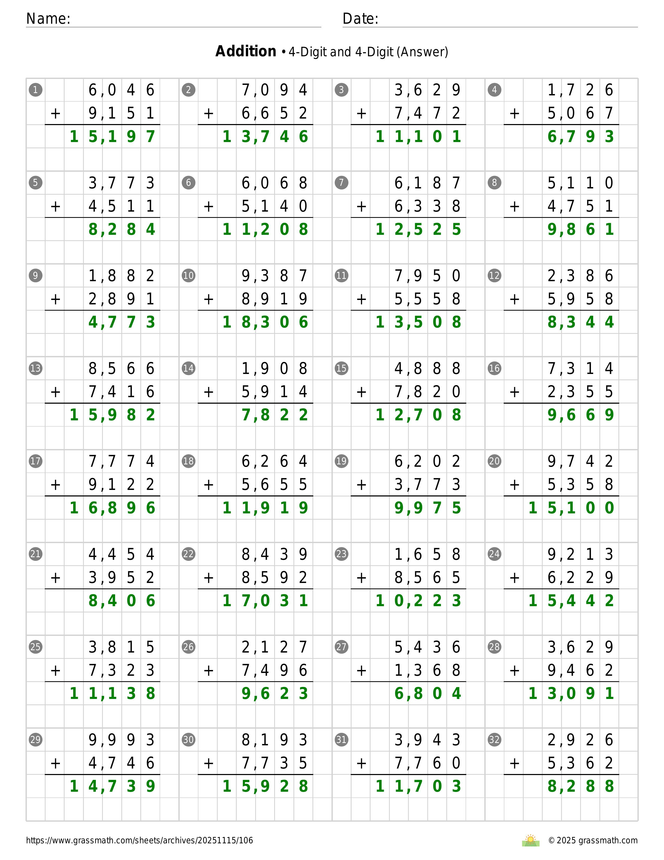 Addition 4-Digit and 4-Digit