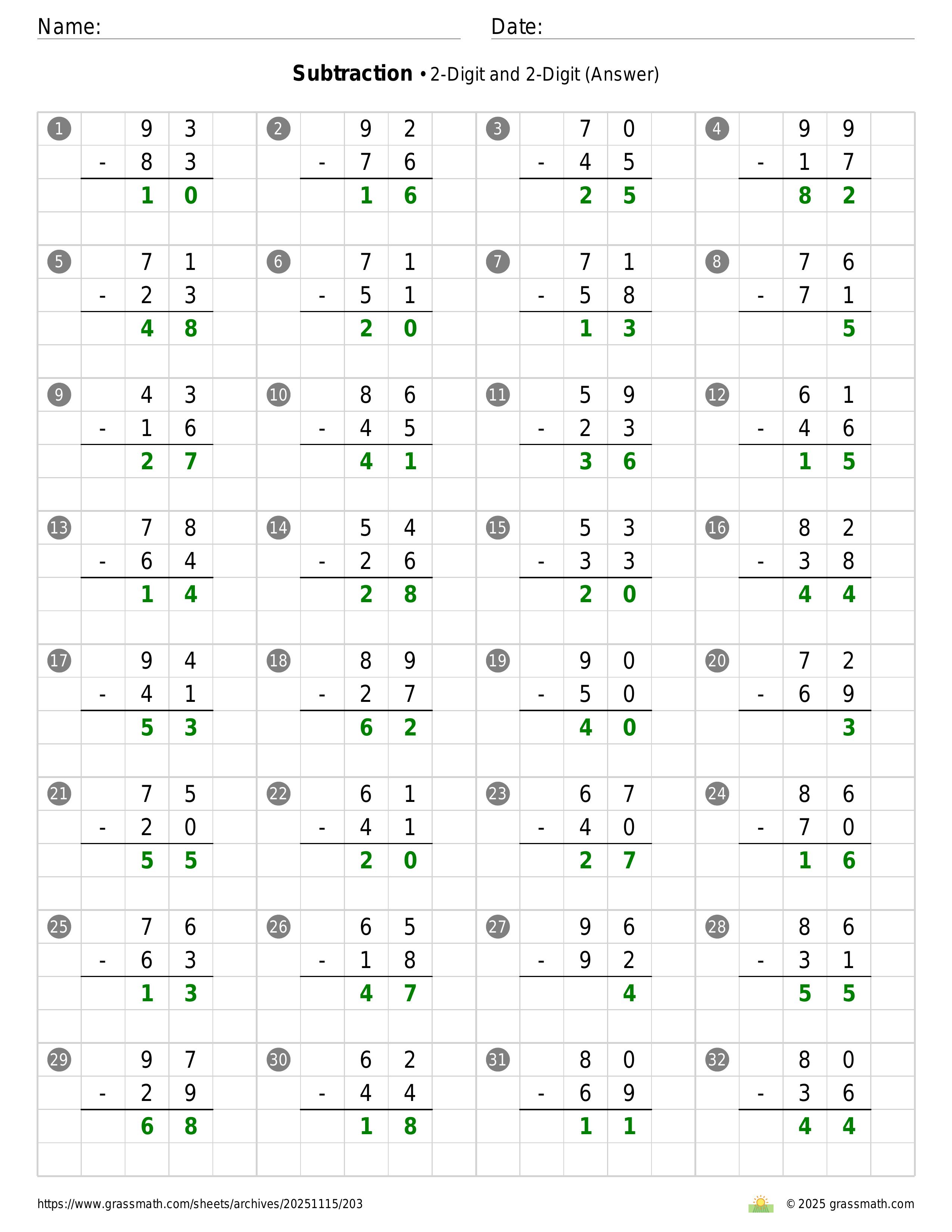 Subtraction 2-Digit and 2-Digit