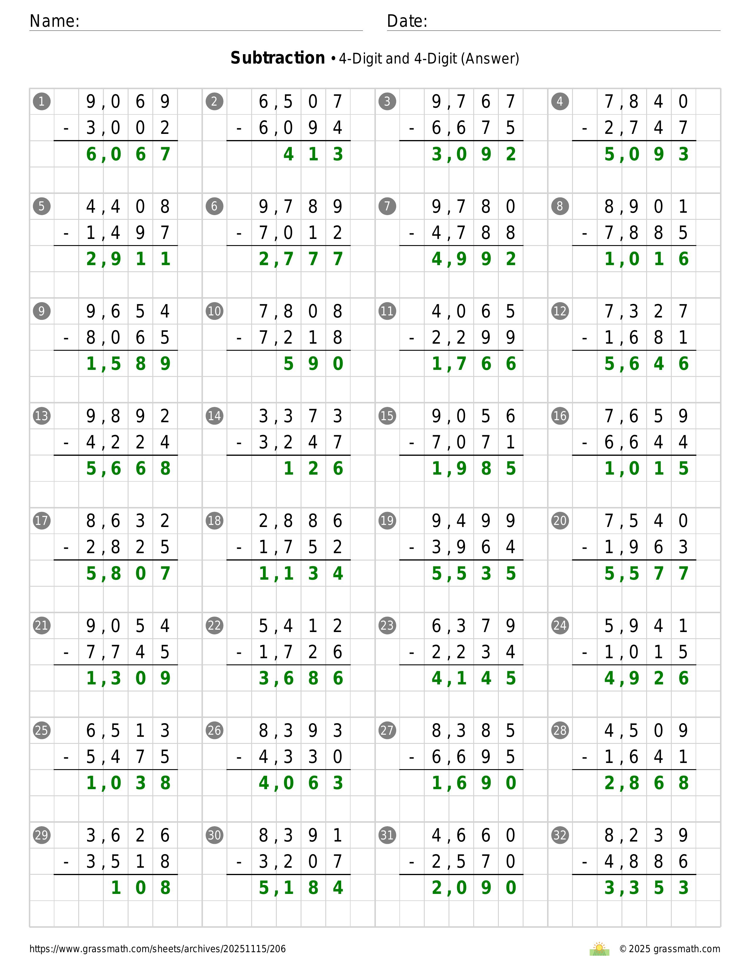 Subtraction 4-Digit and 4-Digit