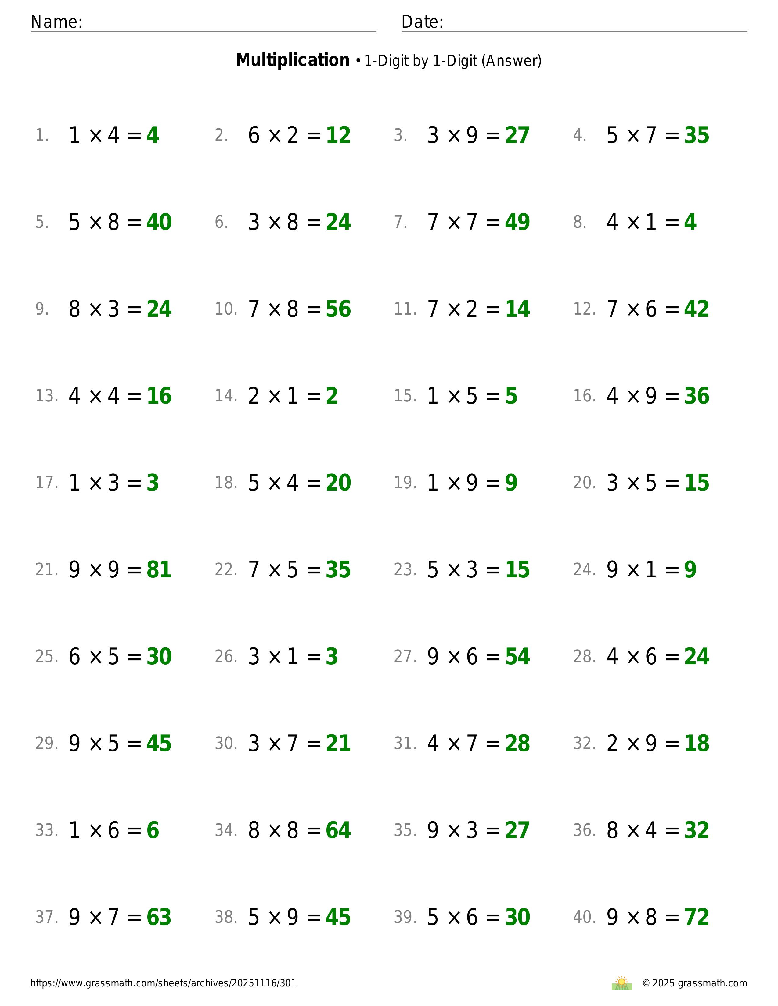 Multiplication 1-Digit by 1-Digit