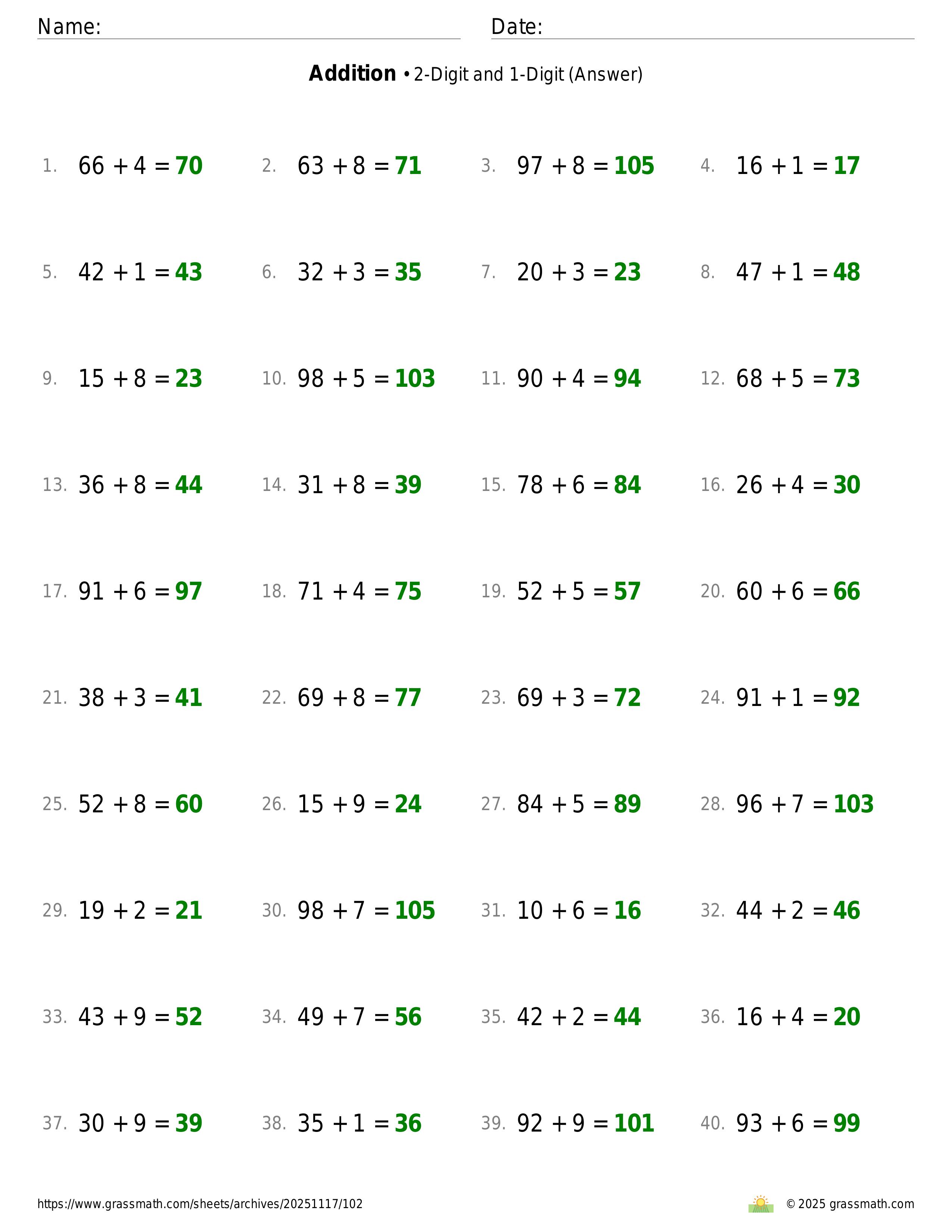 Addition 2-Digit and 1-Digit