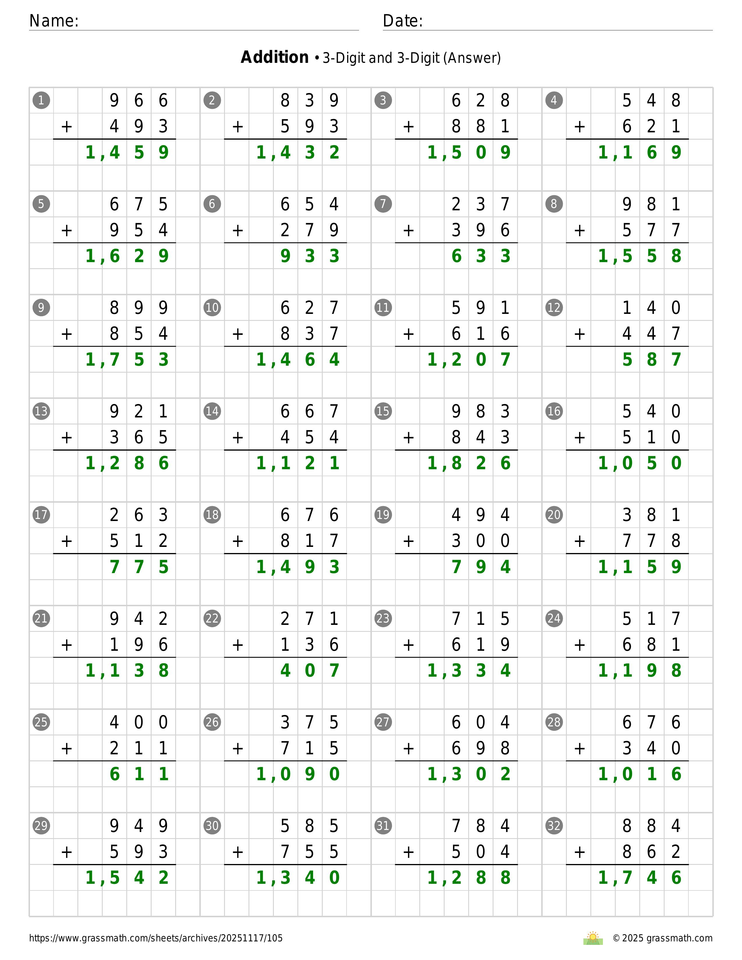 Addition 3-Digit and 3-Digit