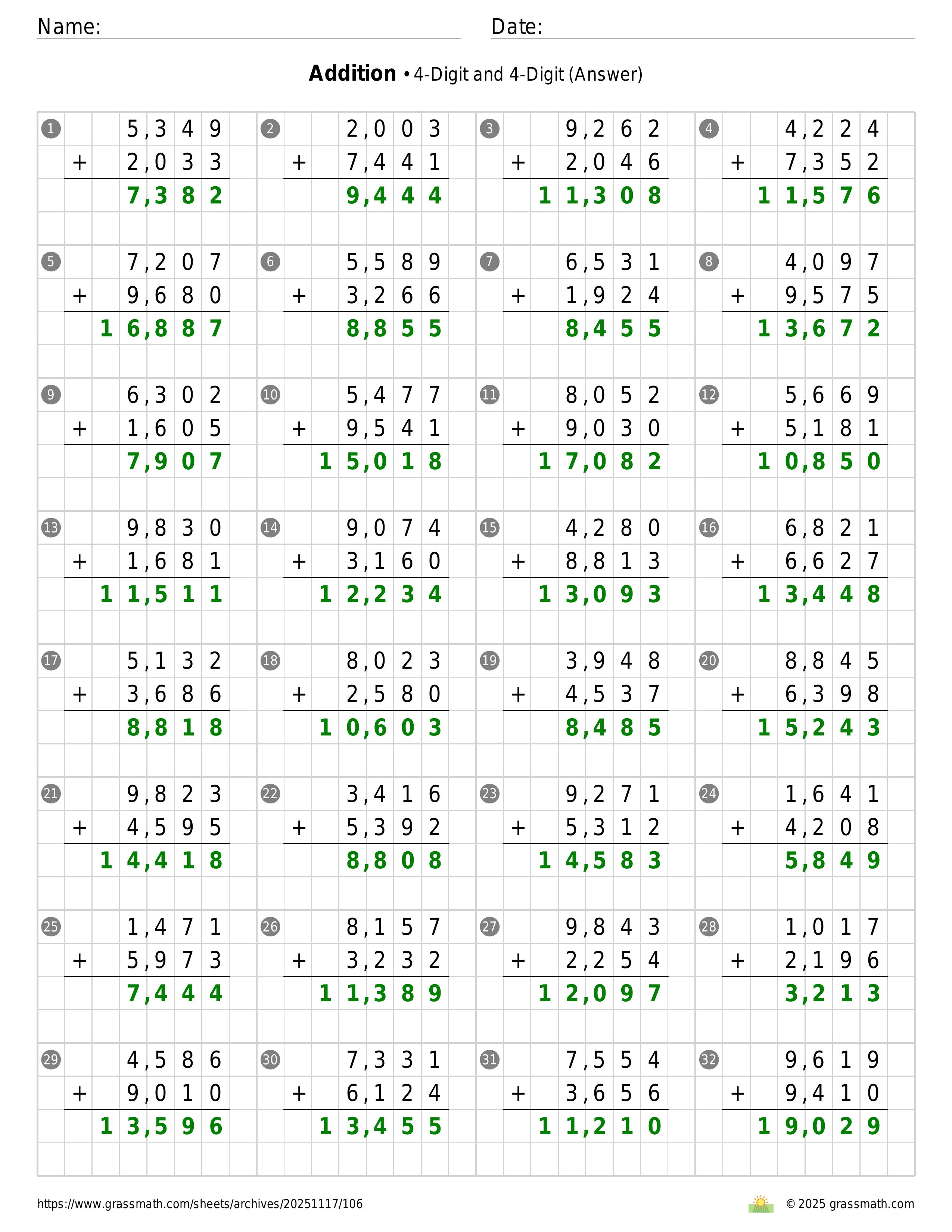 Addition 4-Digit and 4-Digit