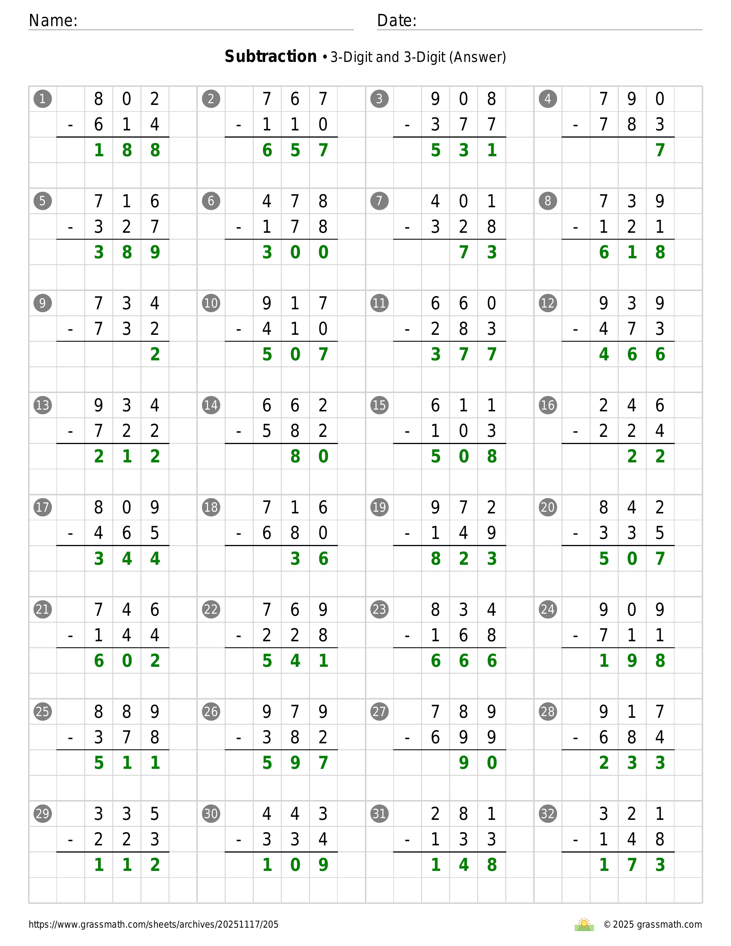 Subtraction 3-Digit and 3-Digit