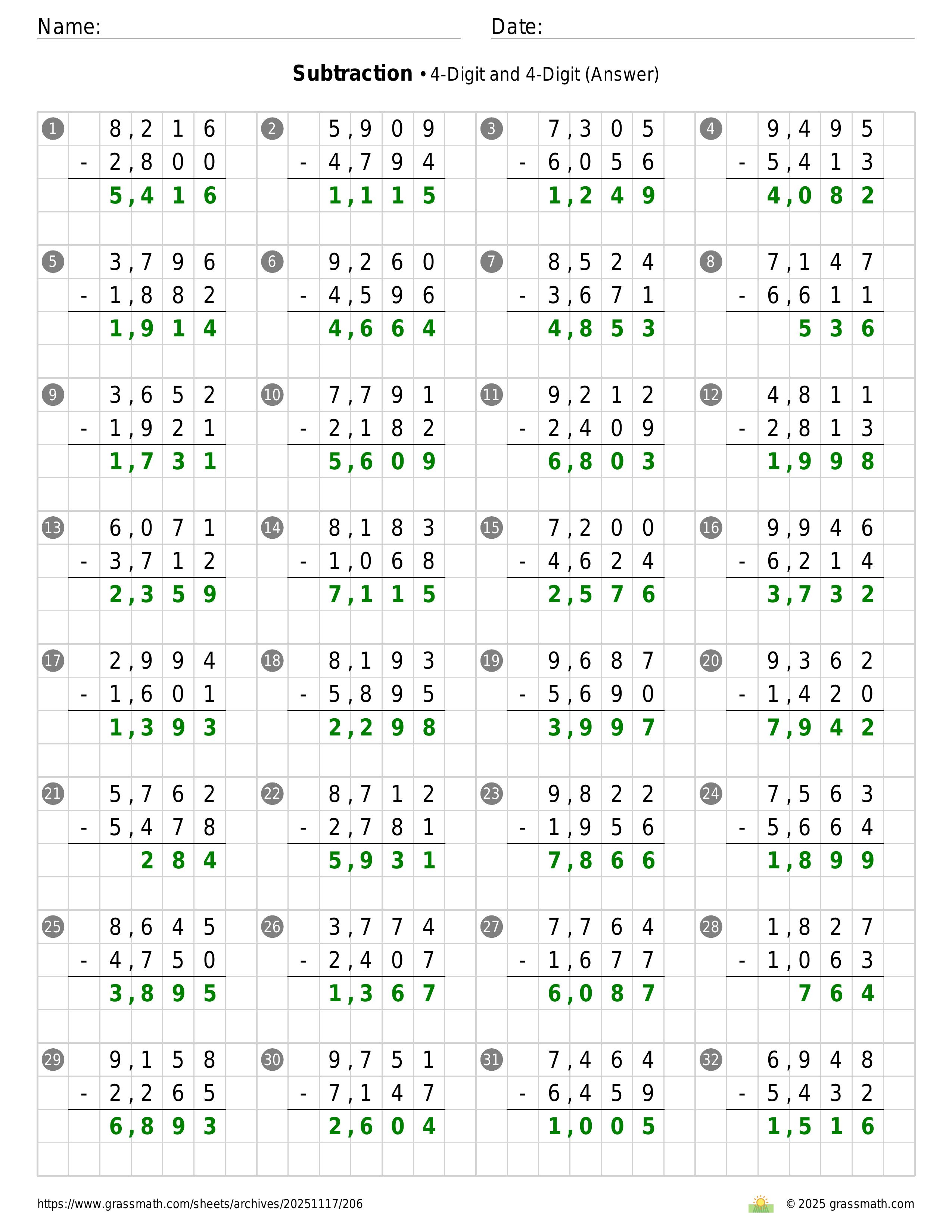 Subtraction 4-Digit and 4-Digit