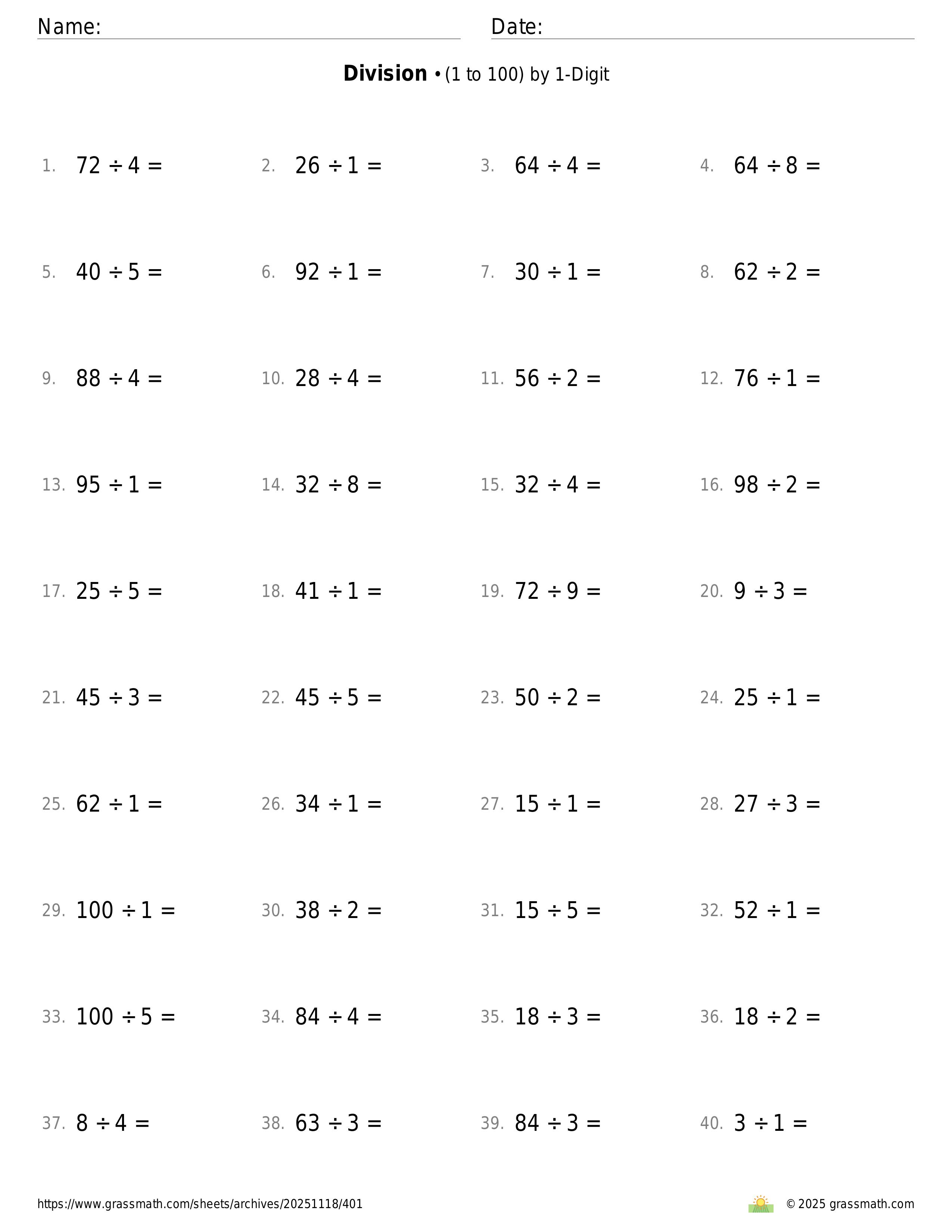 3-Digit by 1-Digit