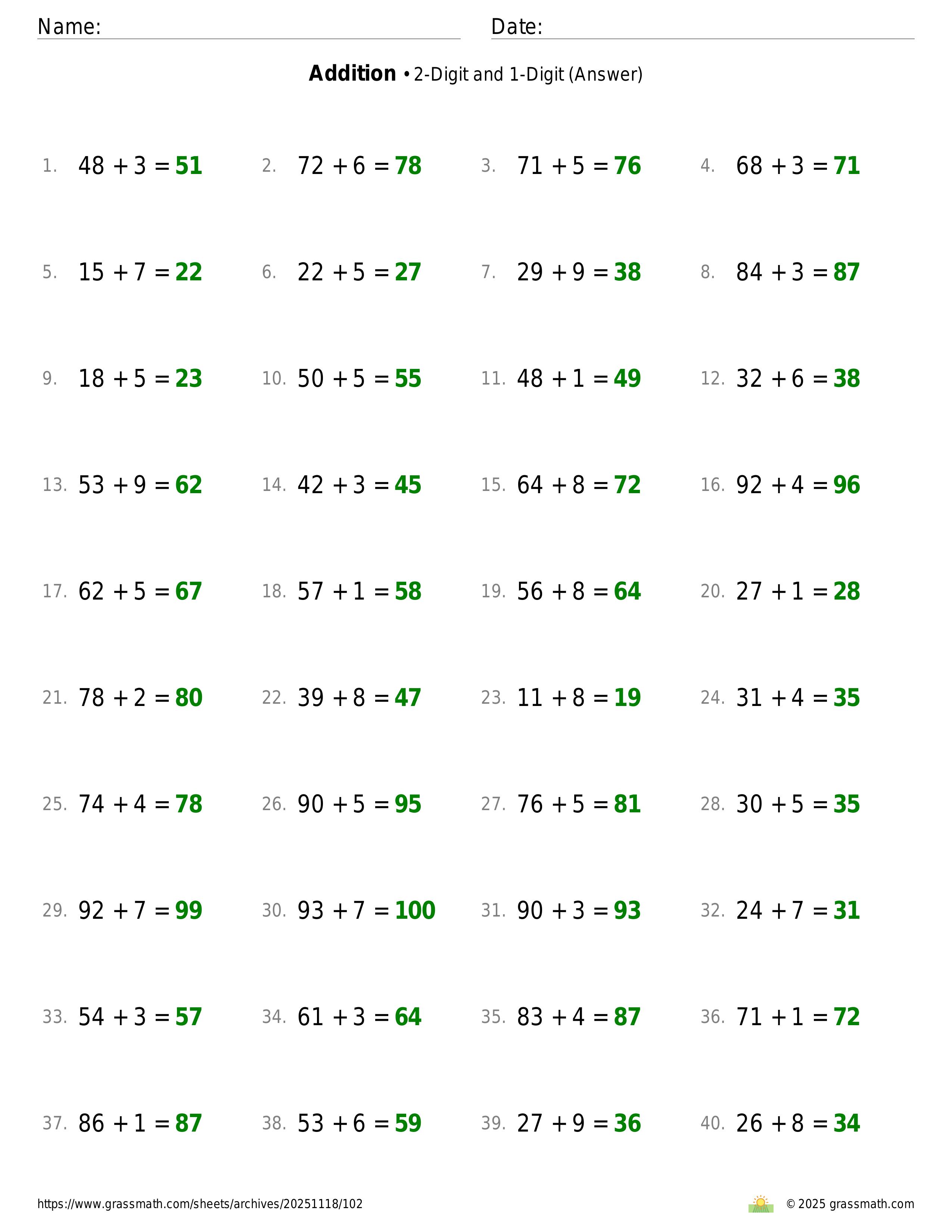 Addition 2-Digit and 1-Digit