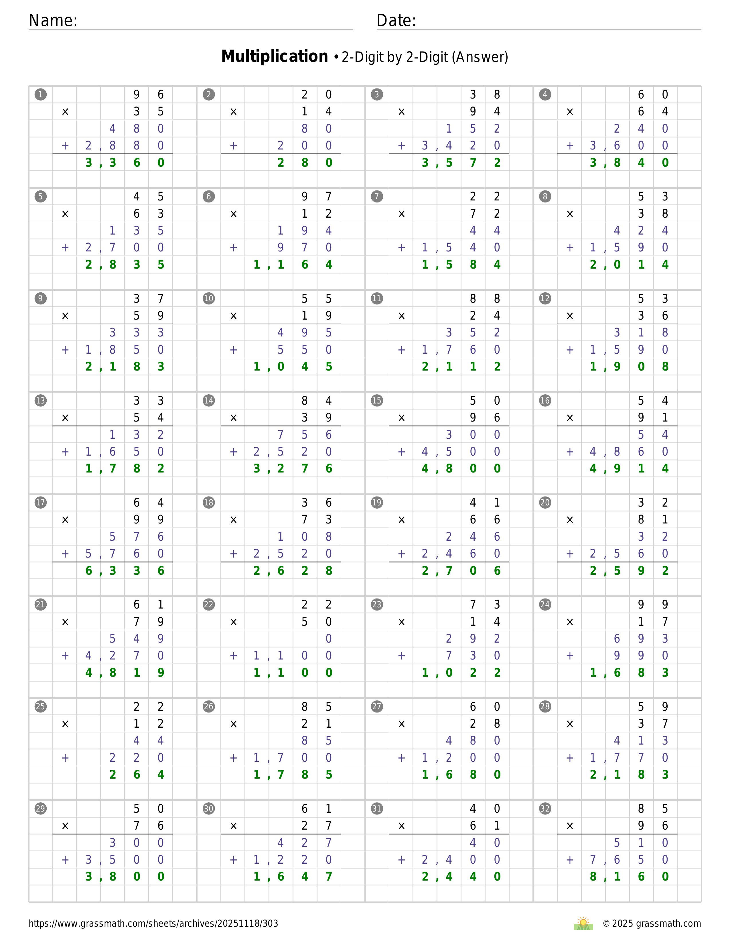 Multiplication 2-Digit by 2-Digit