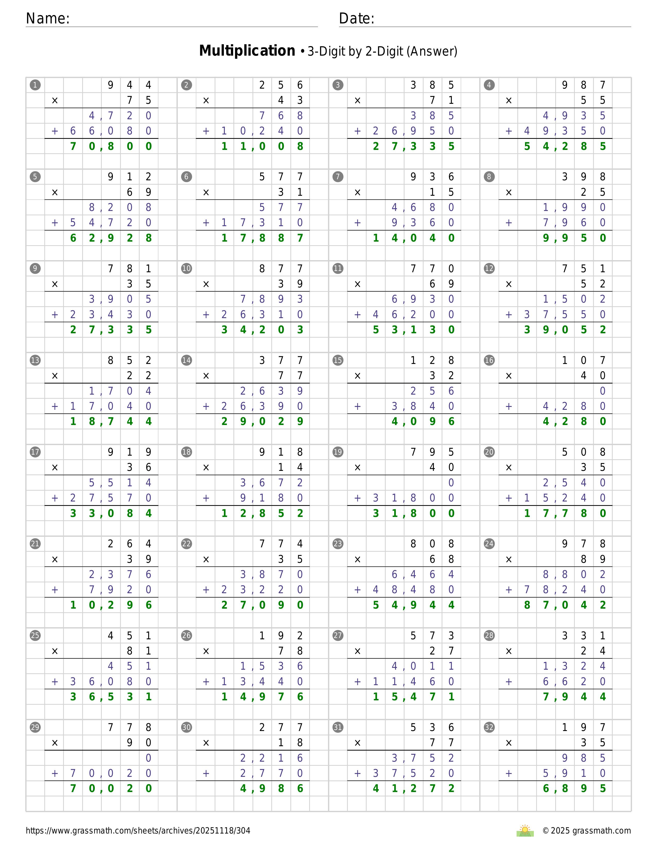 Multiplication 3-Digit by 2-Digit