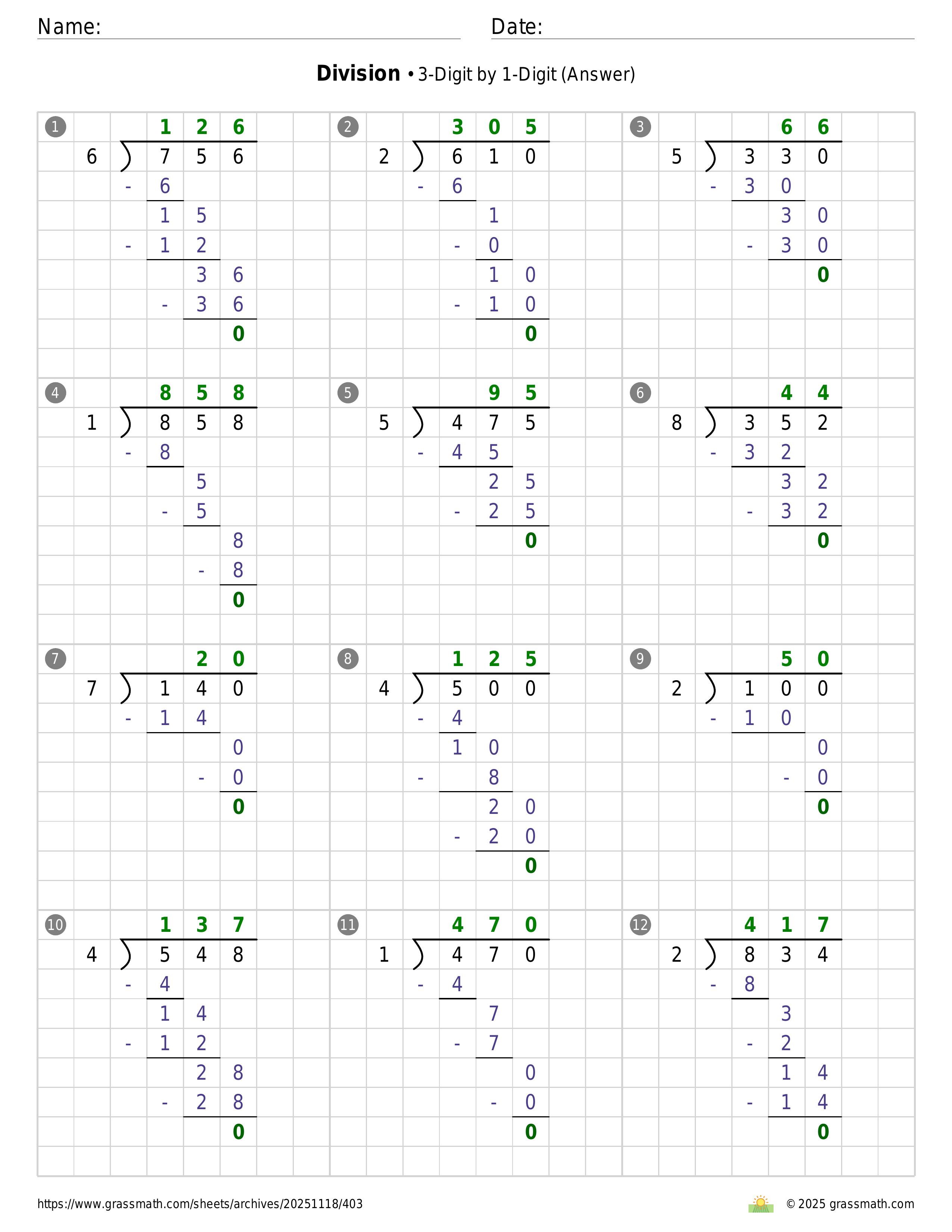 Division 3-Digit by 1-Digit