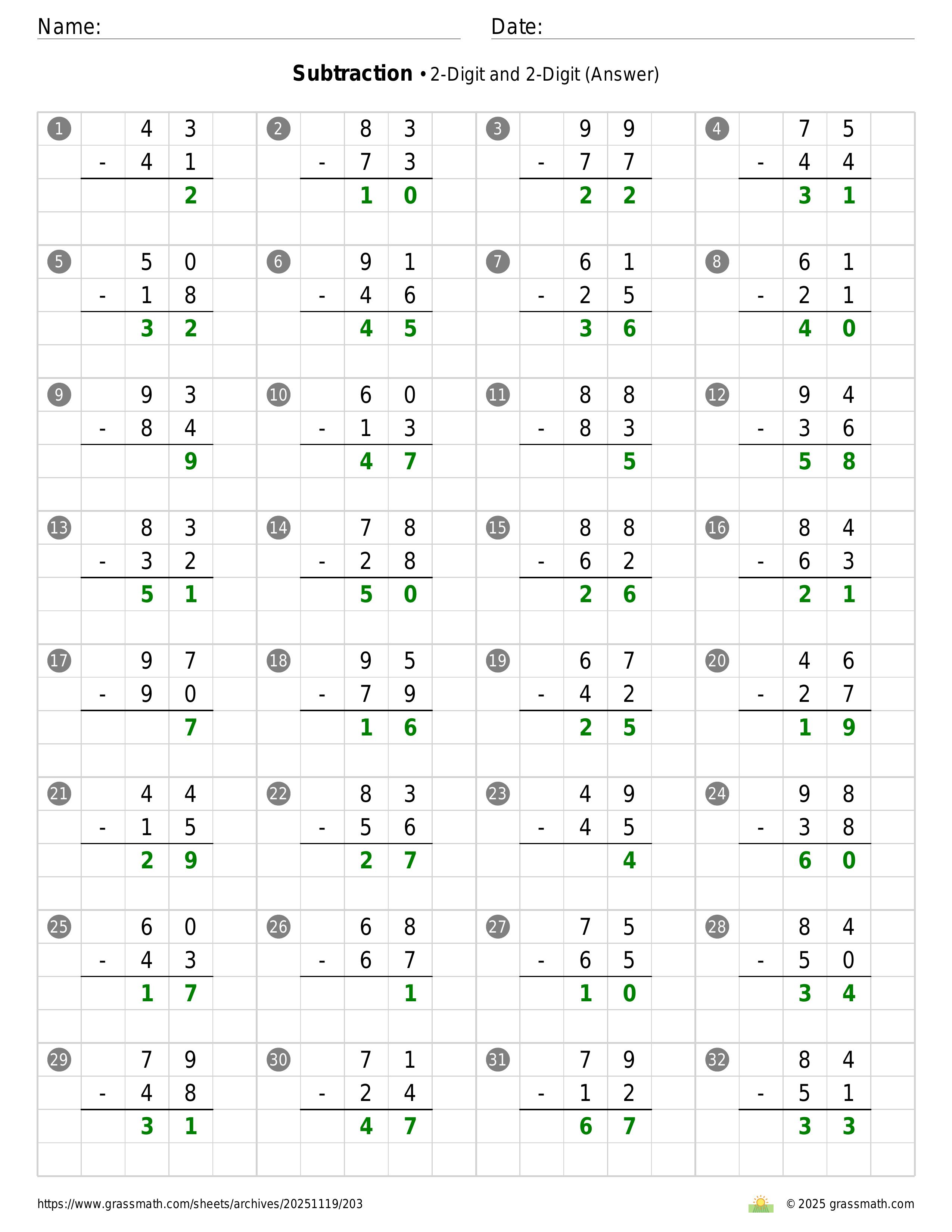 Subtraction 2-Digit and 2-Digit