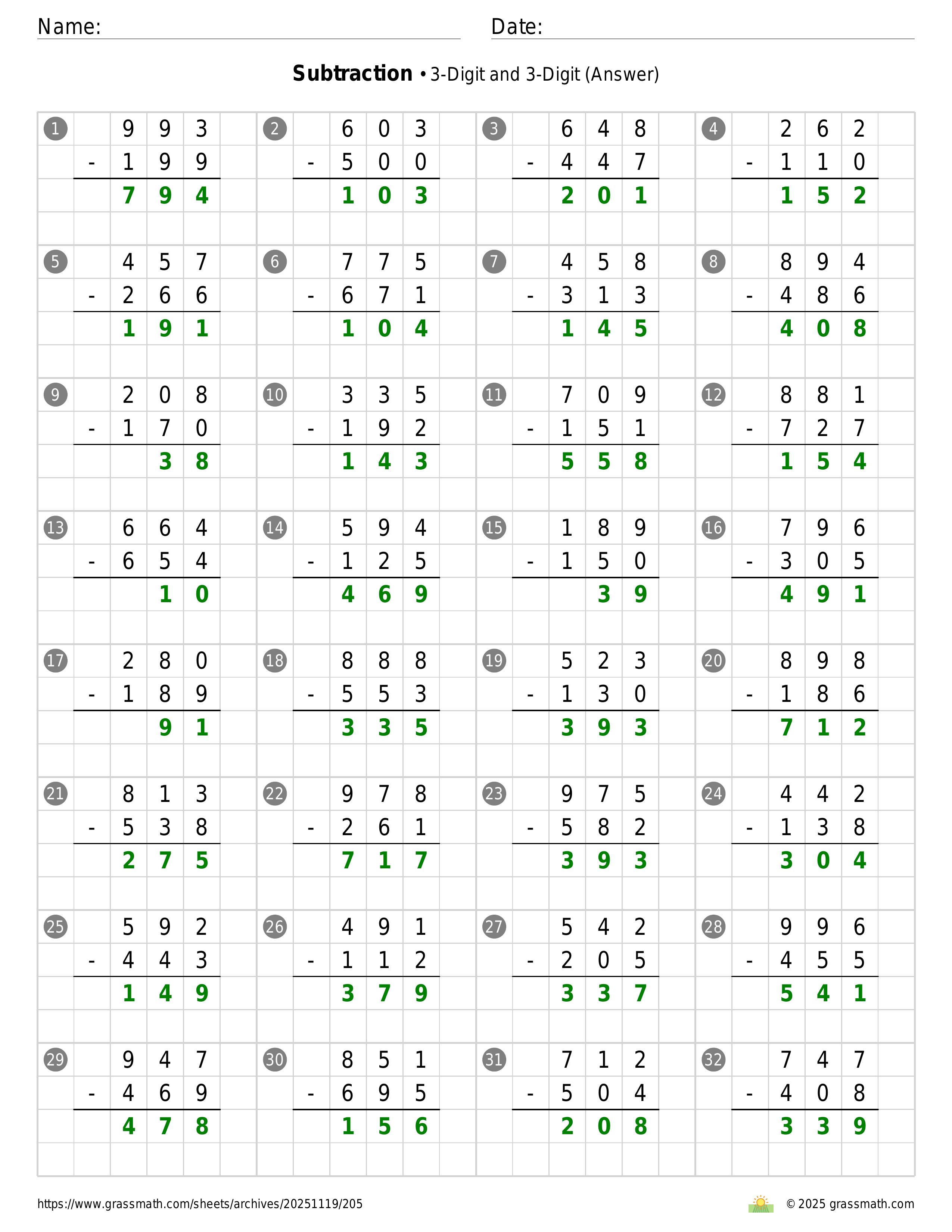 Subtraction 3-Digit and 3-Digit
