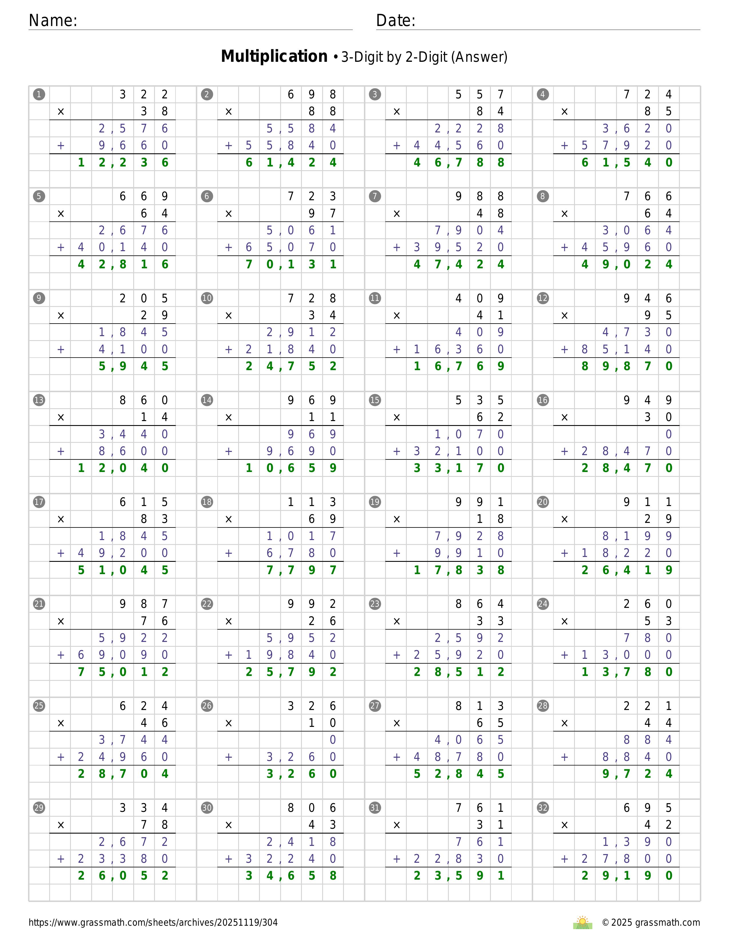 Multiplication 3-Digit by 2-Digit