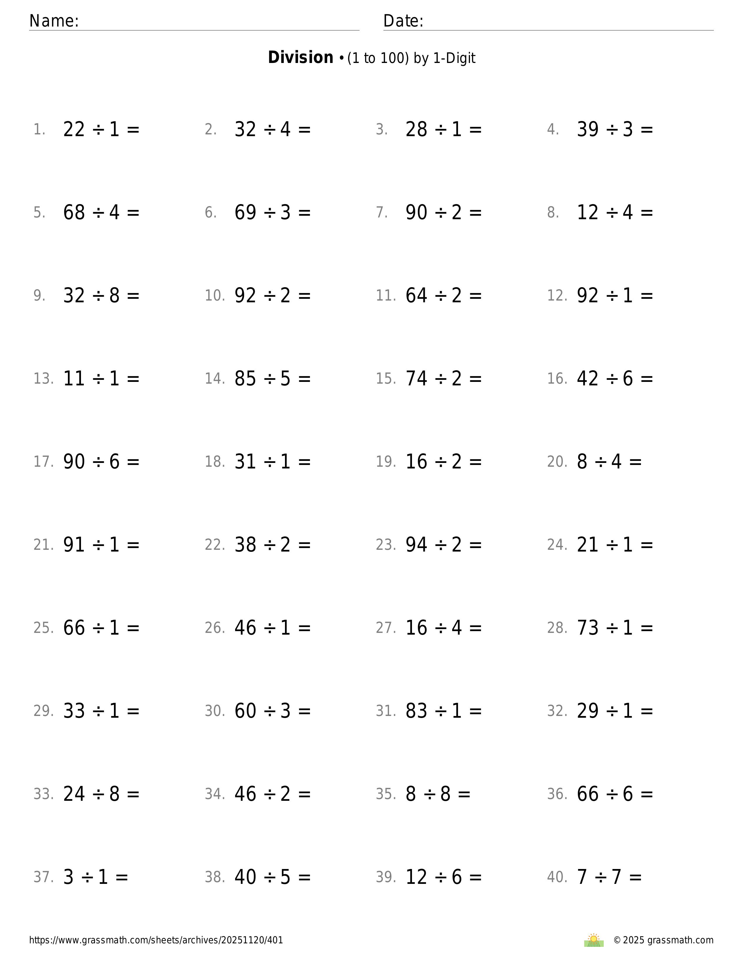 3-Digit by 1-Digit