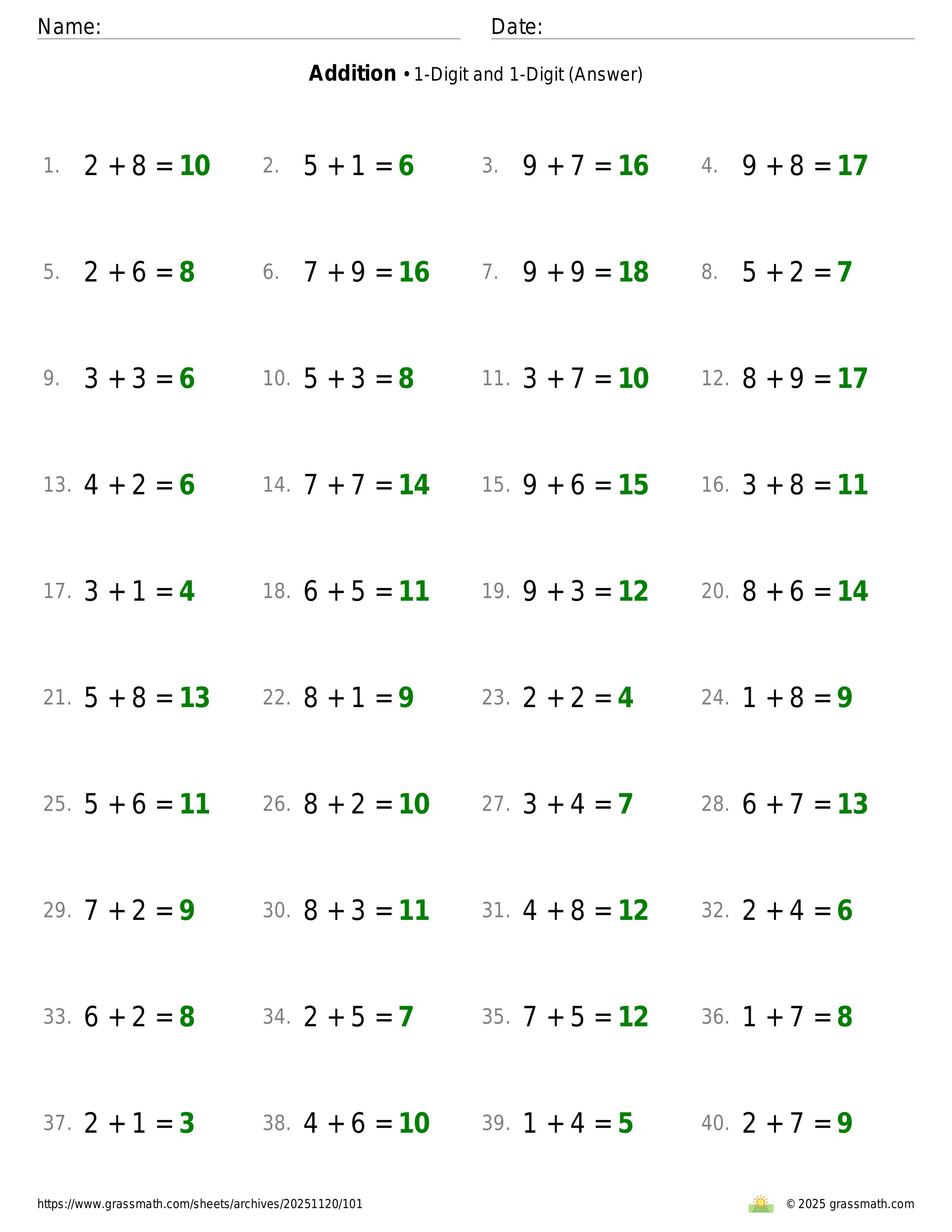 Addition 1-Digit and 1-Digit