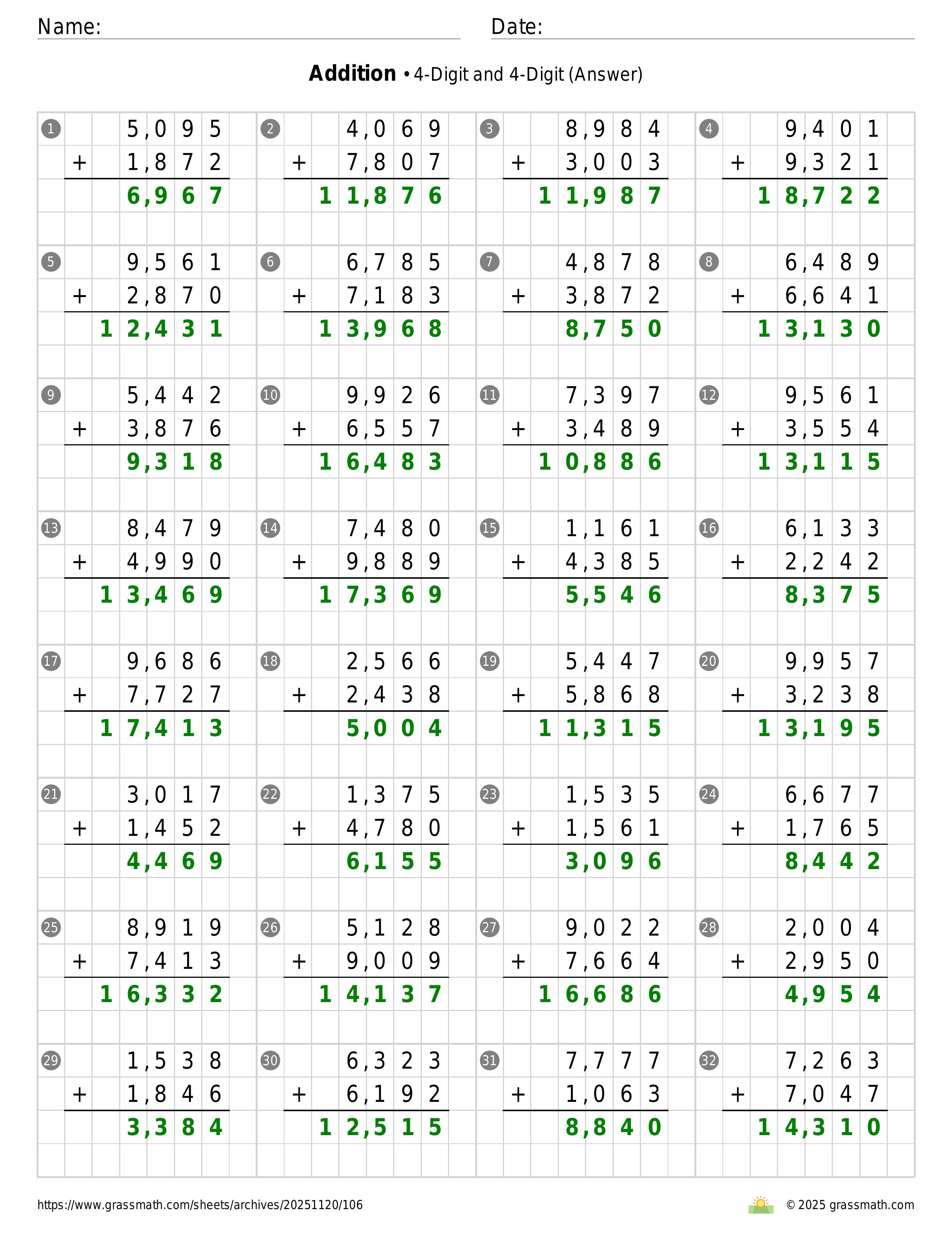 Addition 4-Digit and 4-Digit