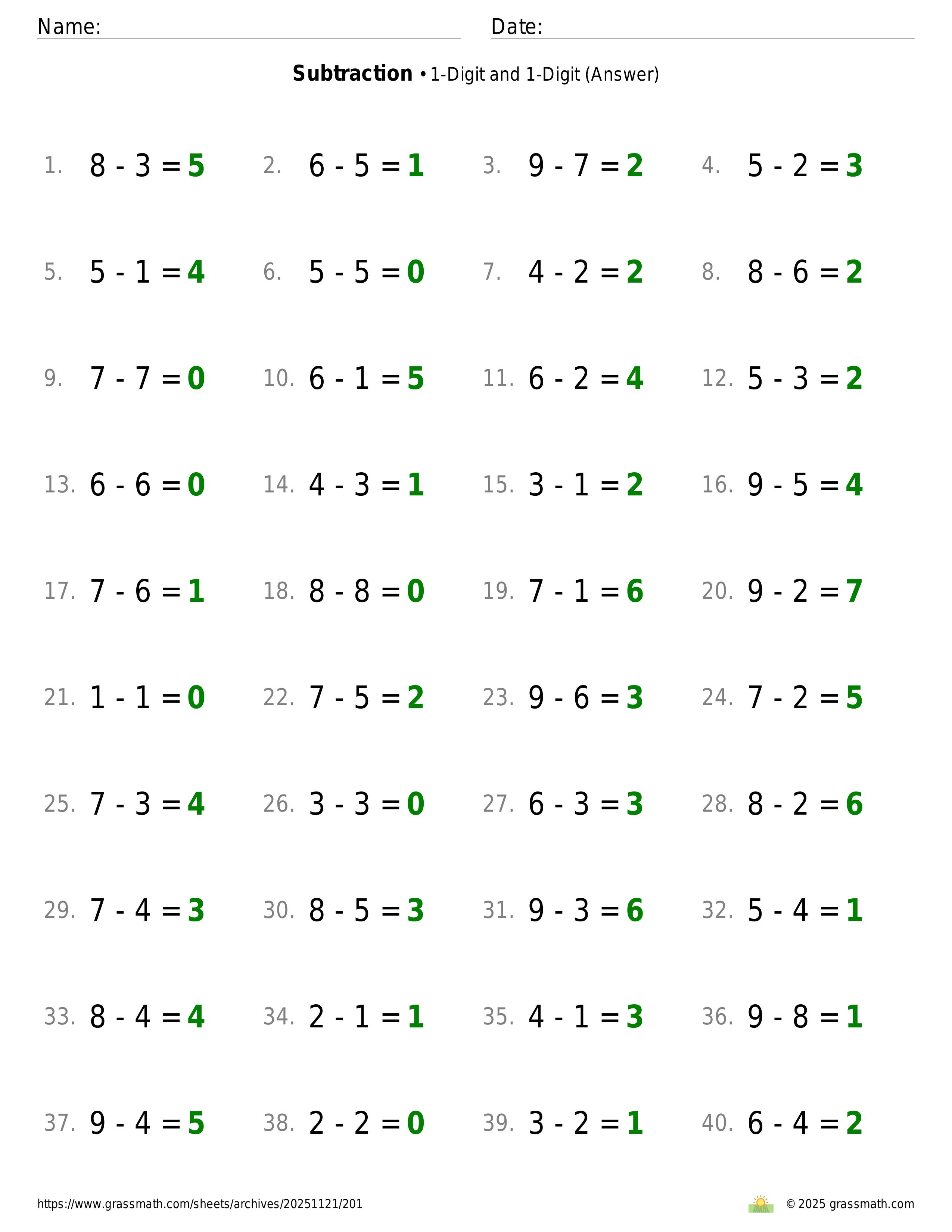 Subtraction 1-Digit and 1-Digit