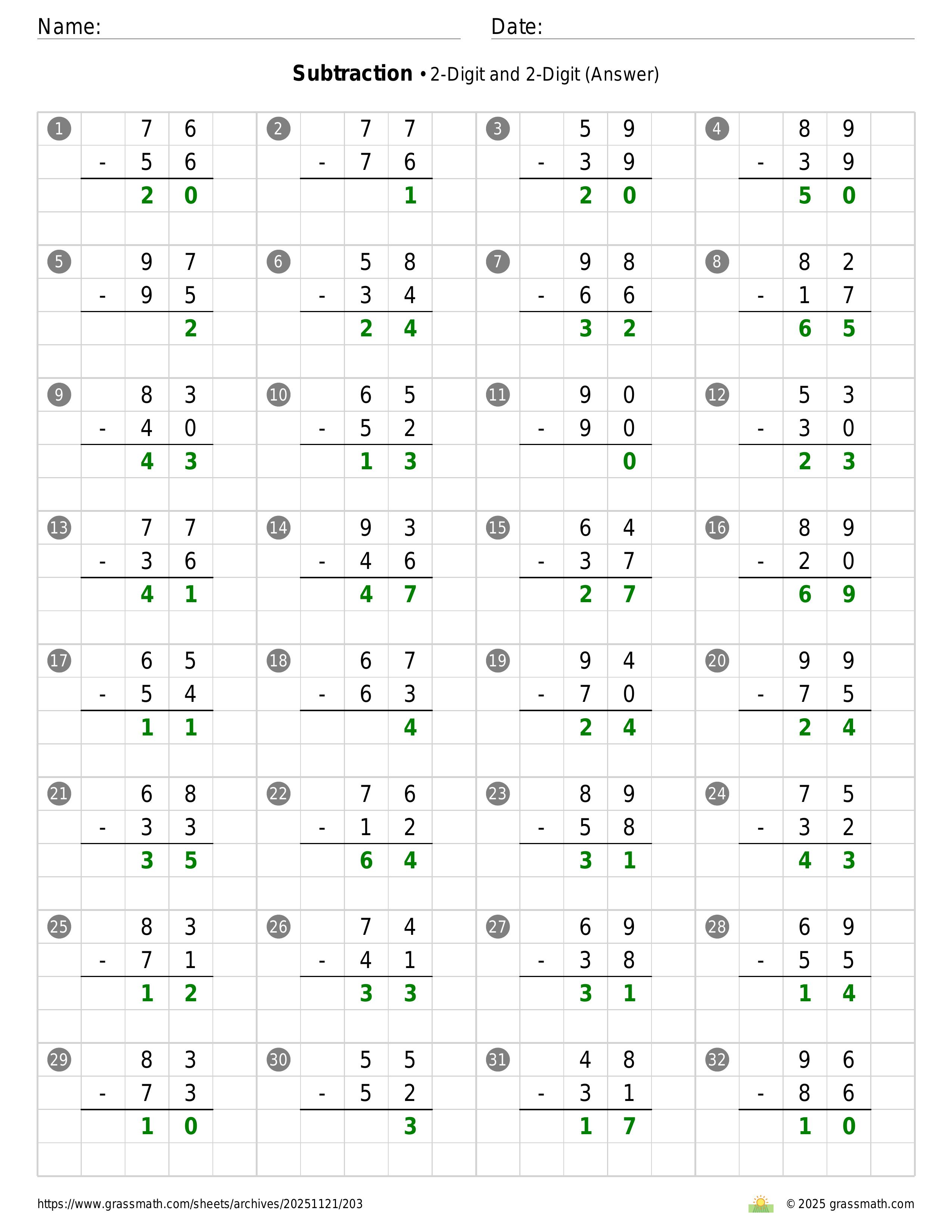 Subtraction 2-Digit and 2-Digit