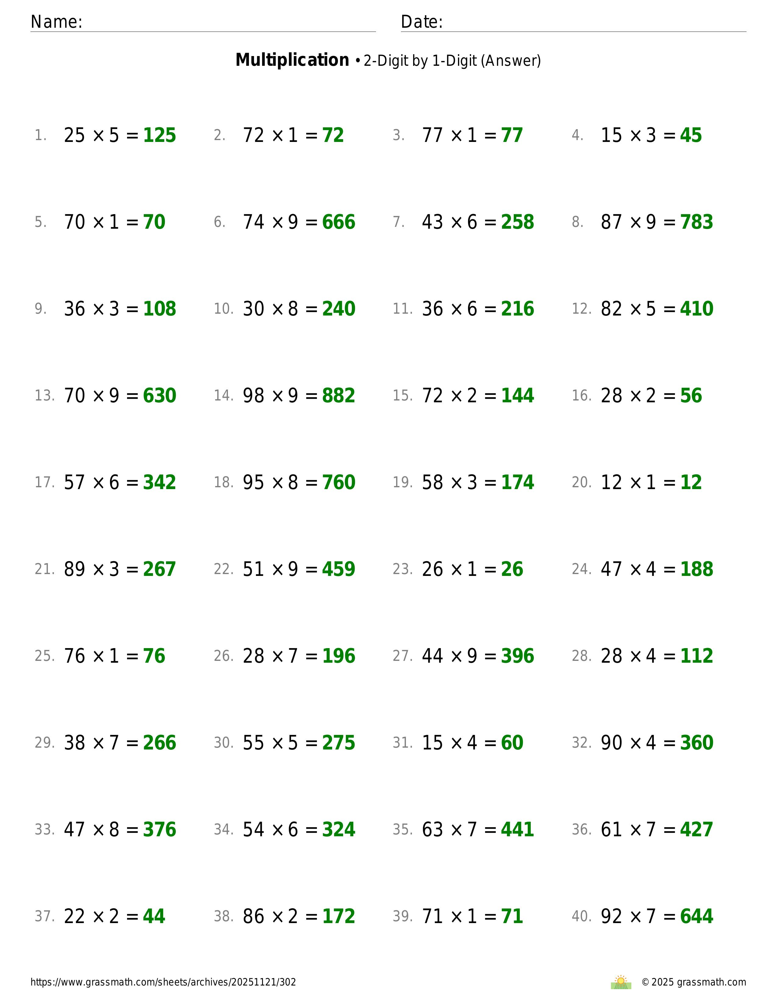 Multiplication 2-Digit by 1-Digit