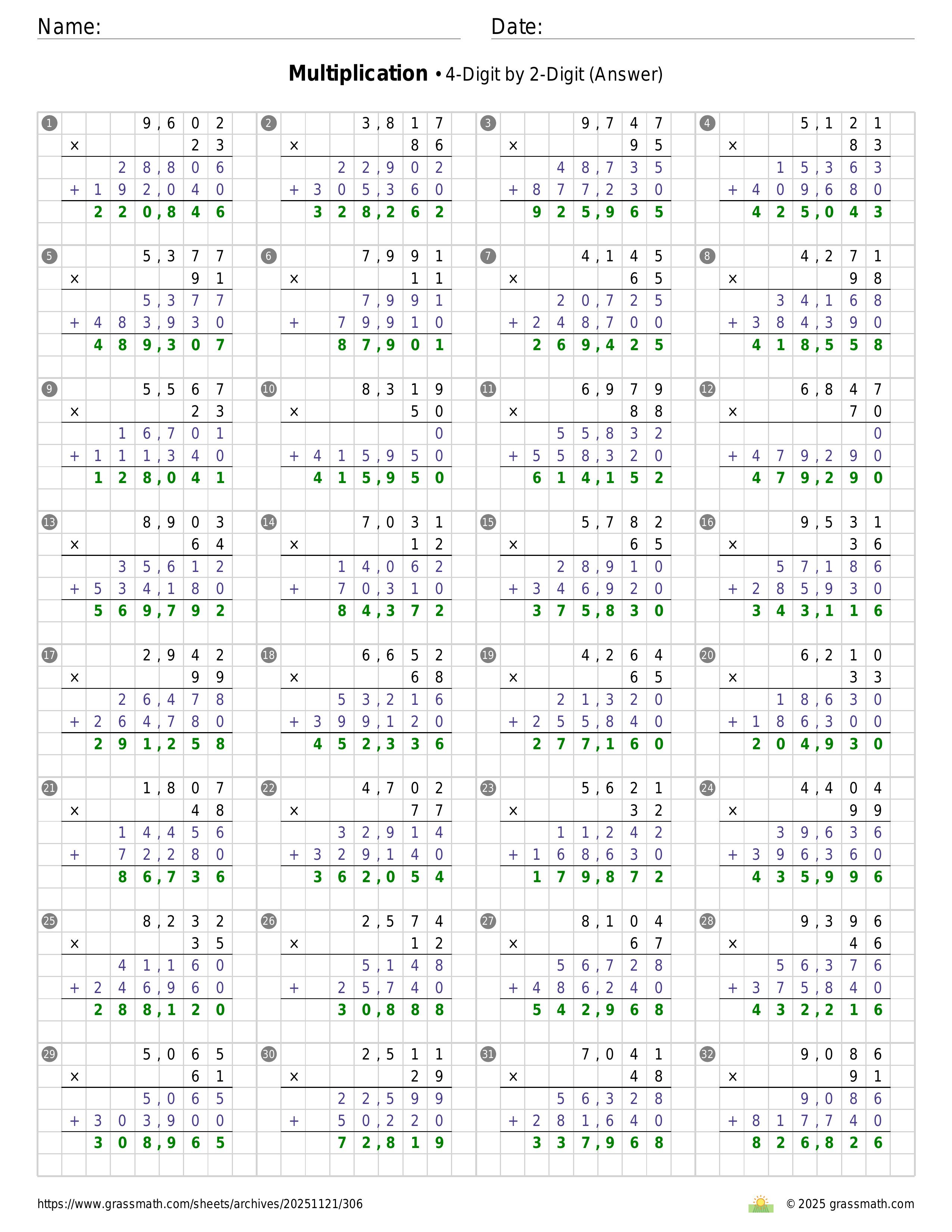 Multiplication 4-Digit by 2-Digit