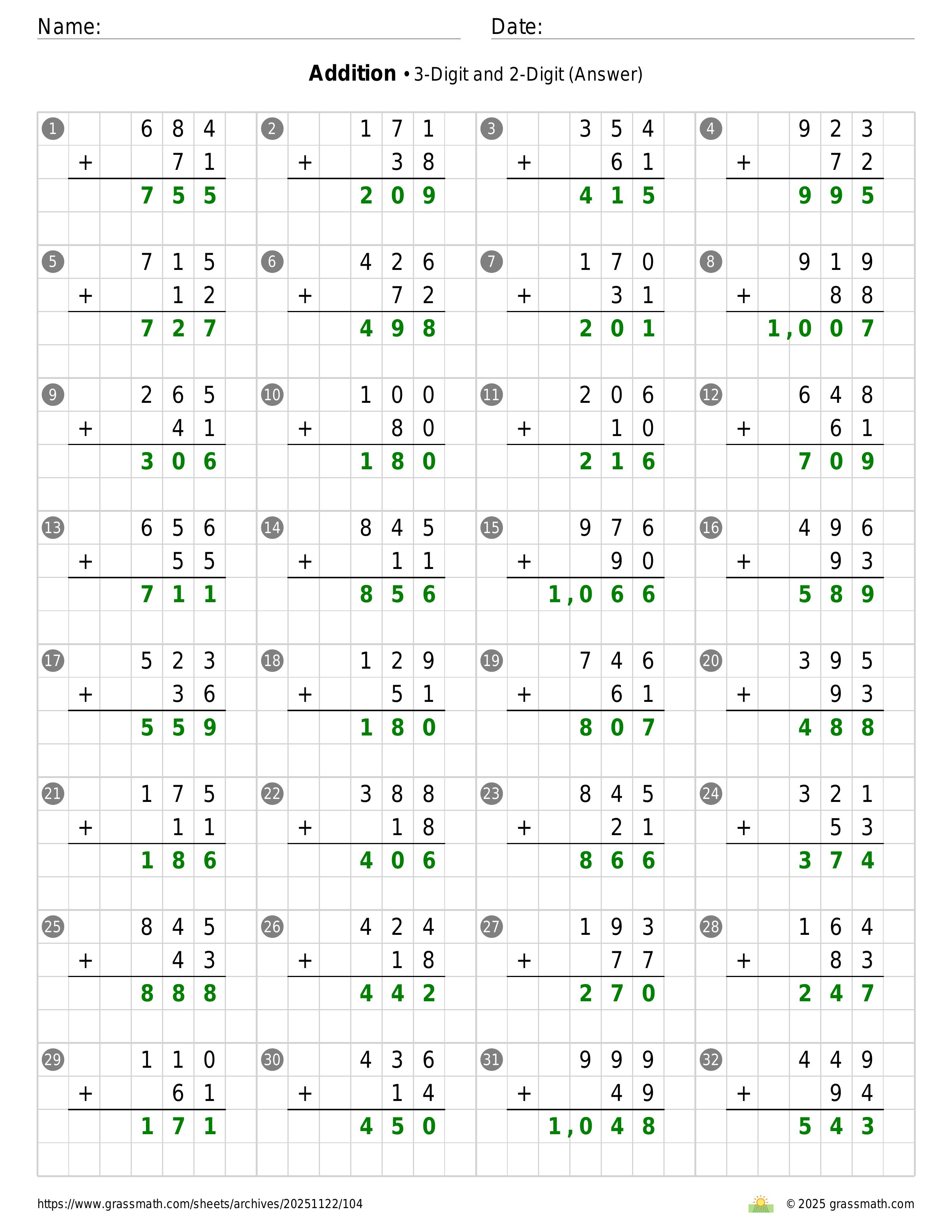 Addition 3-Digit and 2-Digit