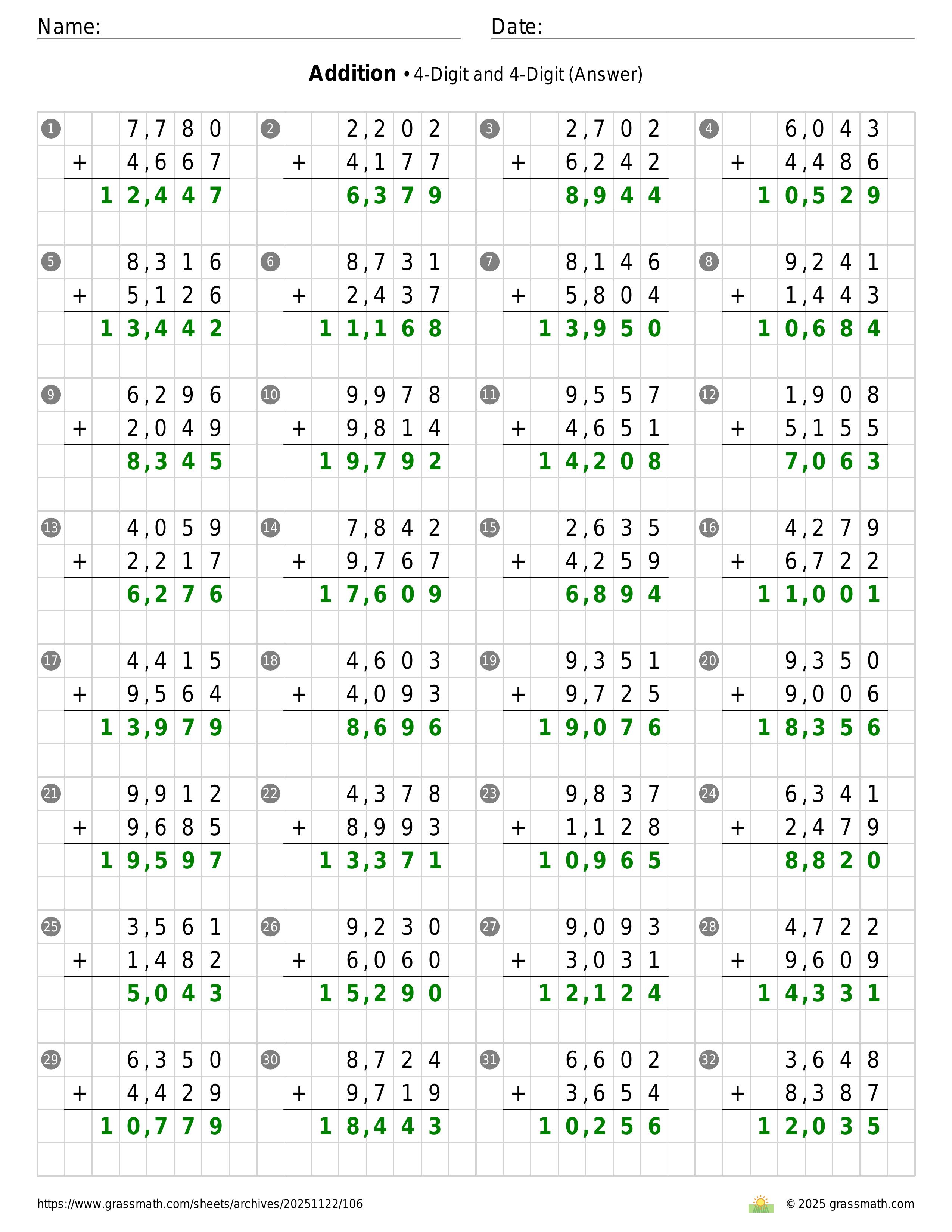 Addition 4-Digit and 4-Digit