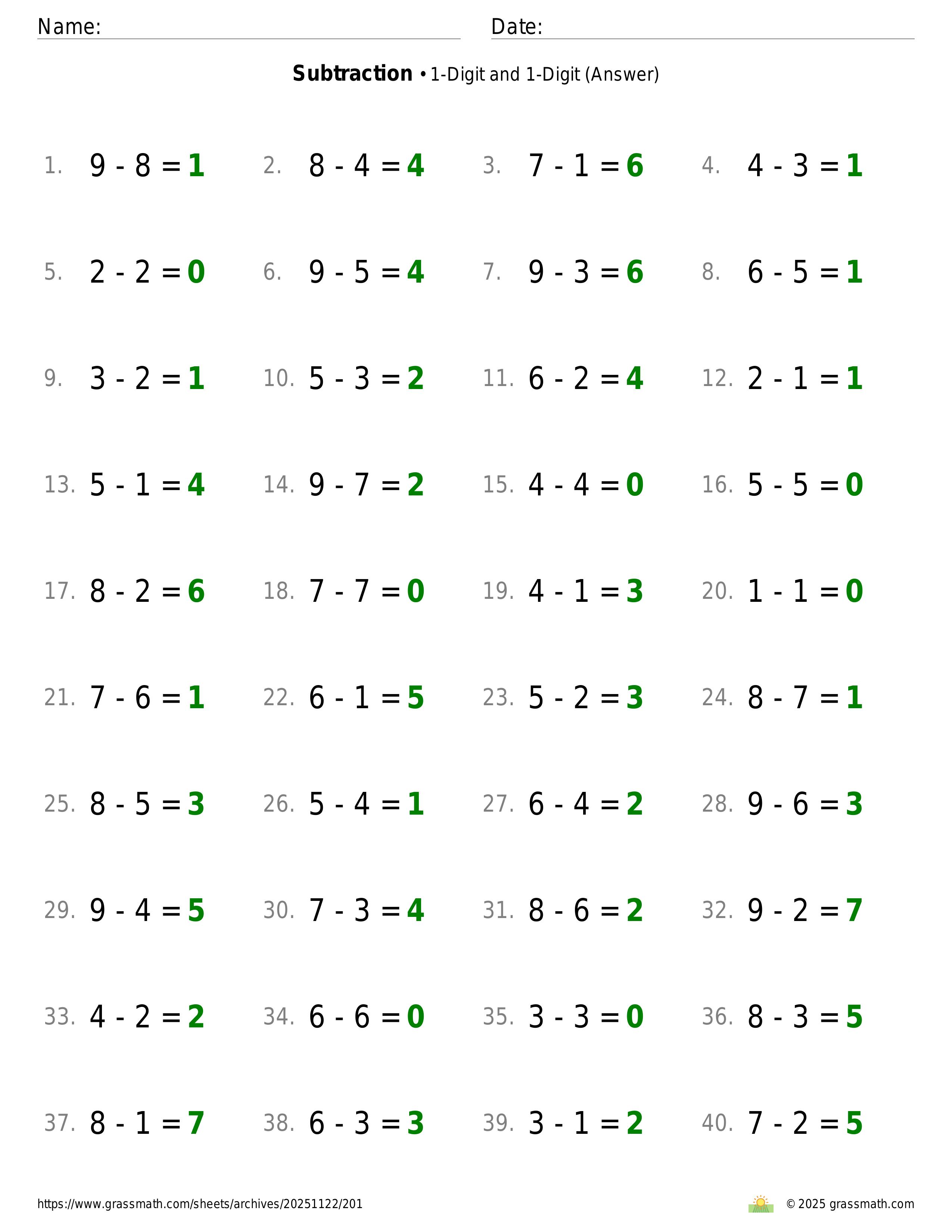 Subtraction 1-Digit and 1-Digit