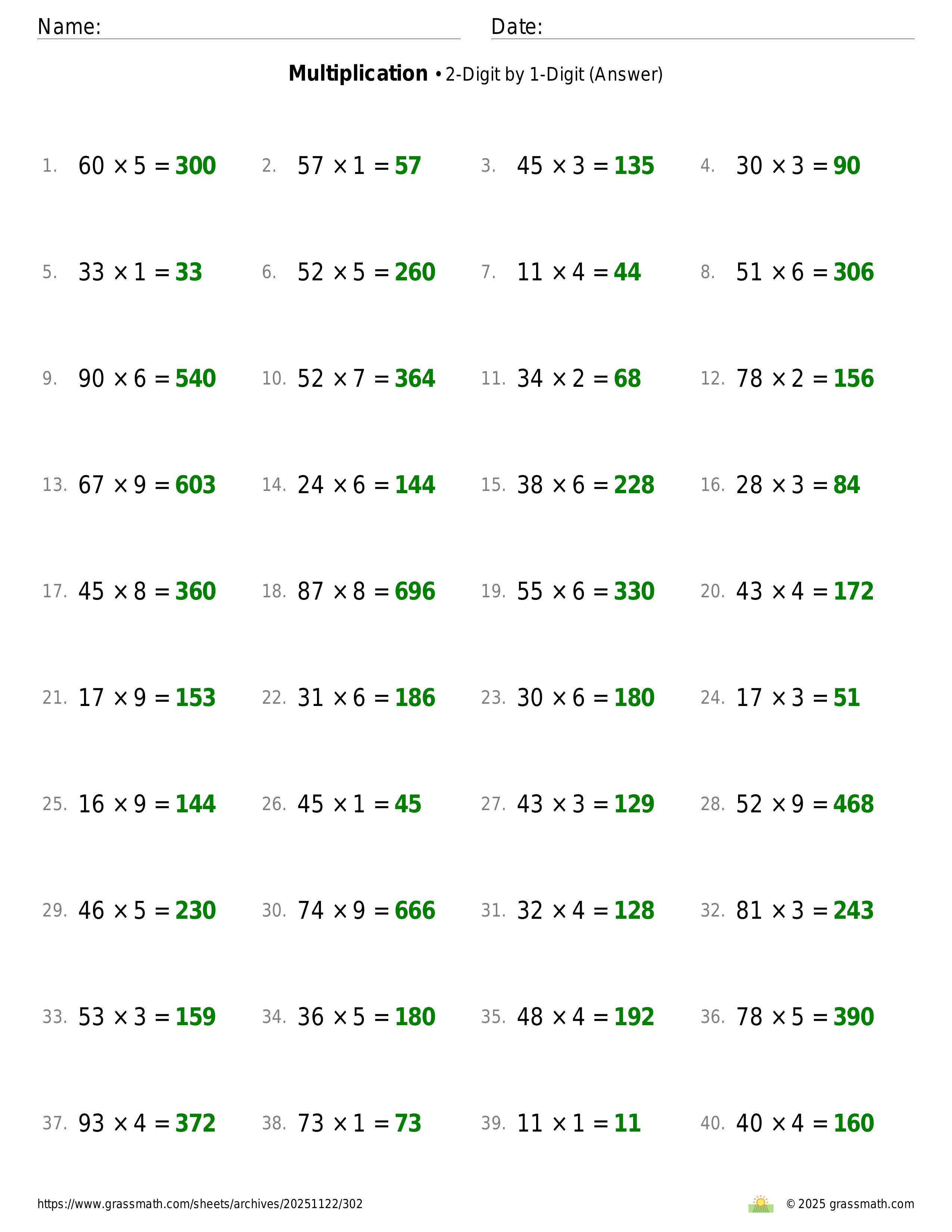 Multiplication 2-Digit by 1-Digit