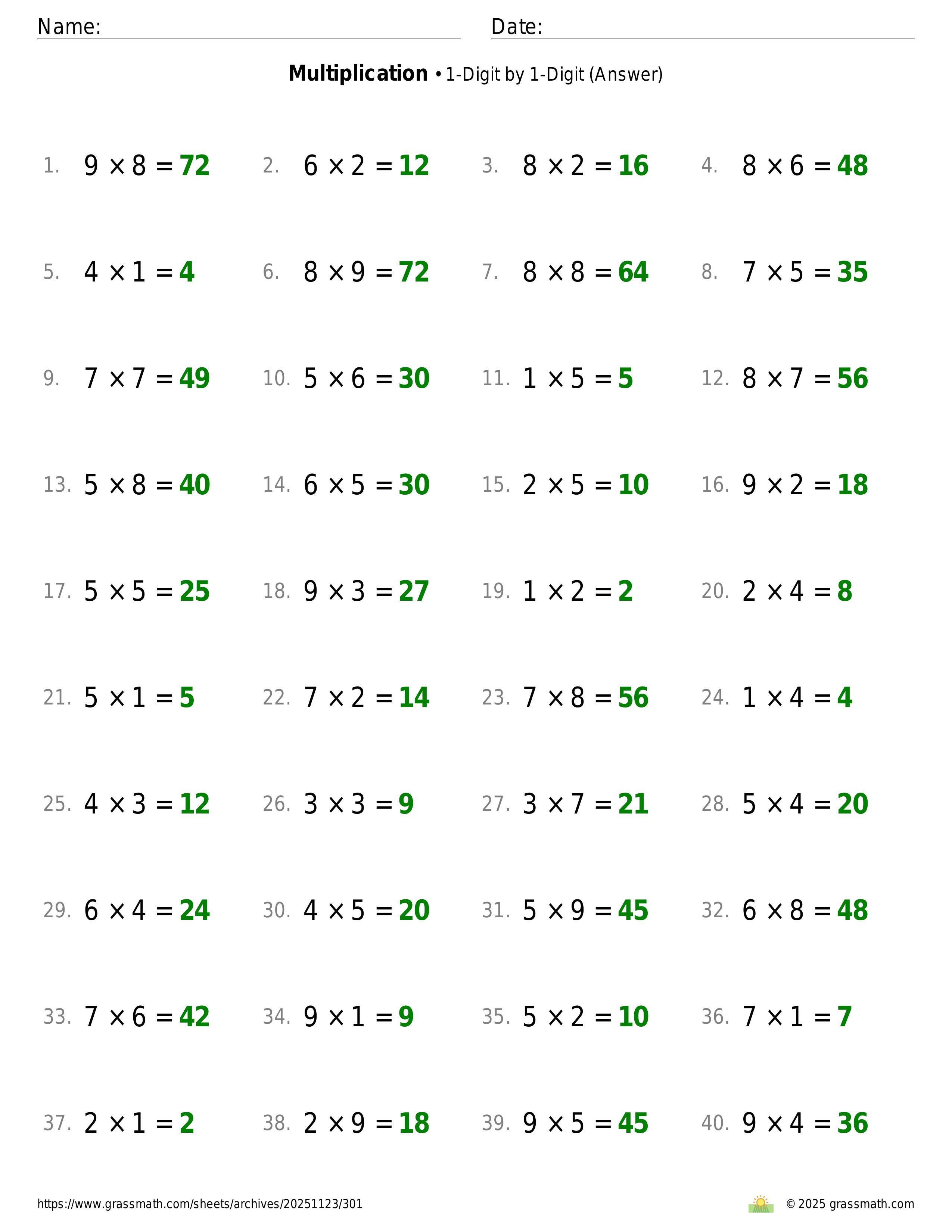 Multiplication 1-Digit by 1-Digit