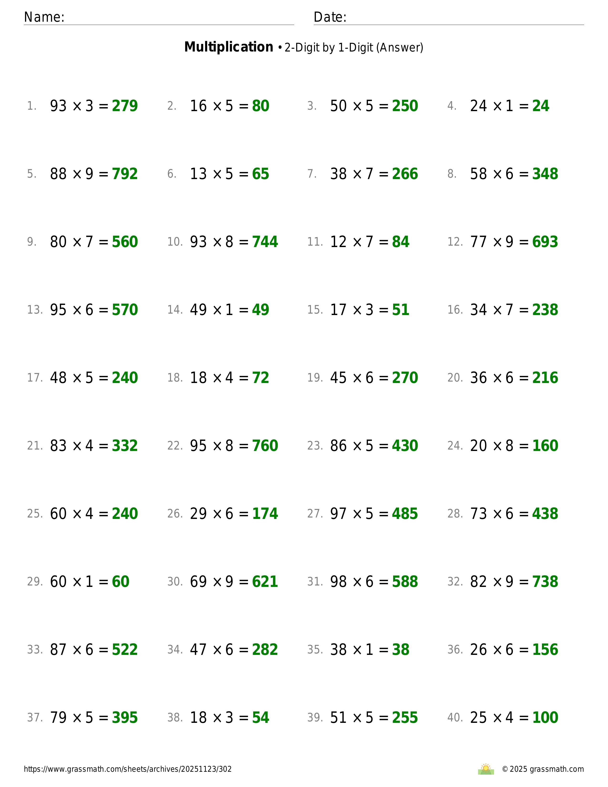 Multiplication 2-Digit by 1-Digit